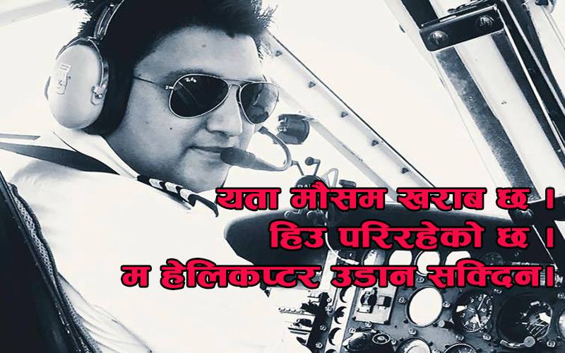 काठमाडौं । दुर्घटनाग्रस्त हेलिकप्टरका क्याप्टेन प्रभाकर केसीले हिउँ परिरहेका कारण हेलिकप्टर उडाउन नसक्ने बताएका थिए ।