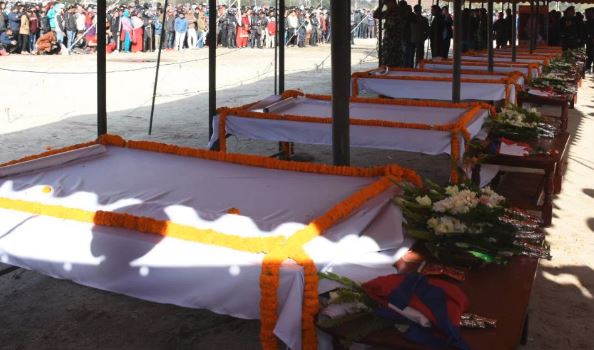 ताप्लेजुङबाट मन्त्री अधिकारीसहित ७ जनाको शव बिहीवार दिउँसो काठमाडौं ल्याइएको थियो । सत्तारुढ नेकपाले दिउँसो ३ बजेपछि श्रद्धान्जलीका लागि टुँडिखेलमा राख्ने भनेको थियो ।