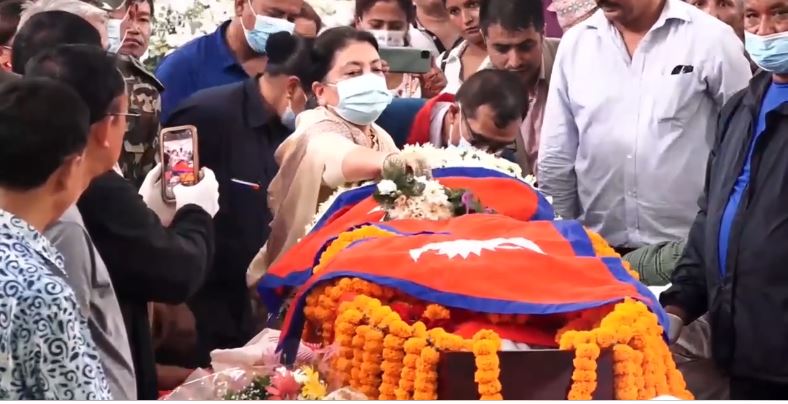 काठमाडौं । पूर्व राष्ट्रपति विद्यादेवी भण्डारीले संविधानसभा अध्यक्ष एवं पूर्व सभामुख सुवासचन्द्र नेम्वाङको पार्थिव शरिरमा राष्ट्रिय झण्डा ओडाएर श्रद्धाञ्जली व्यक्त गरेकी छिन् ।