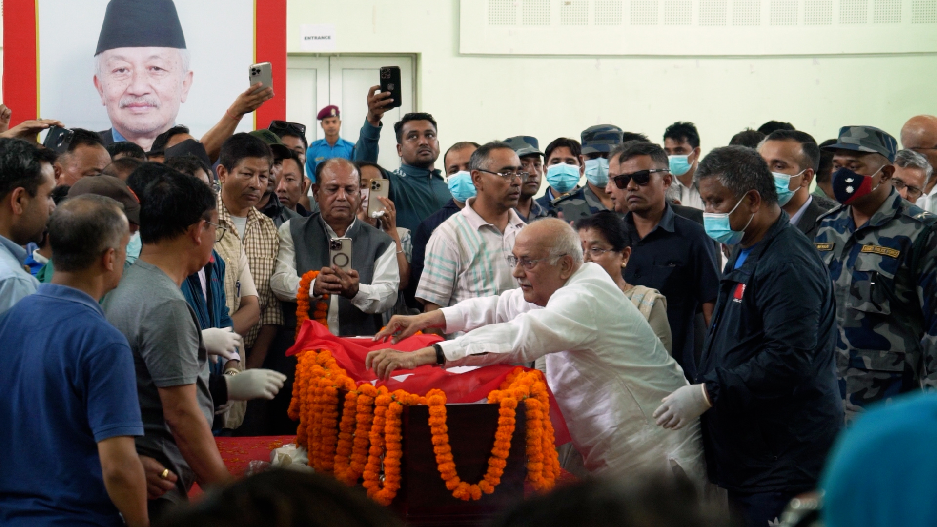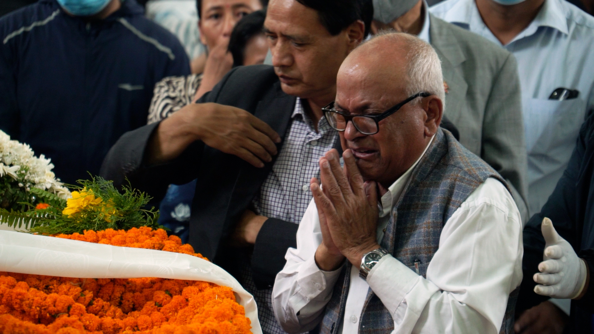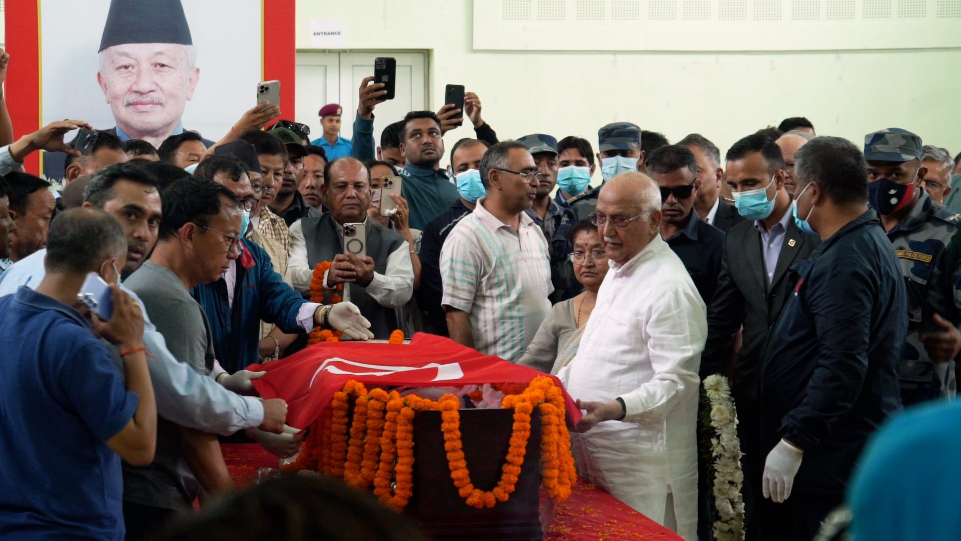 काठमाडौं । नेकपा एमालेका अध्यक्ष केपी शर्मा ओलीले संविधानसभा अध्यक्ष एवं पूर्व सभामुख सुवासचन्द्र नेम्वाङको पार्थिव शरिरमा पार्टीको झण्डा ओडाएर श्रद्धाञ्जली व्यक्त गरेका छन् ।