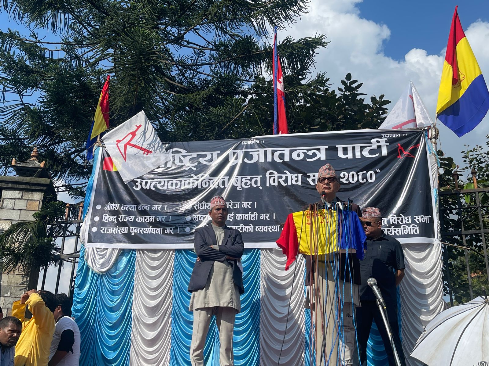 काठमाडौं । राष्ट्रिय प्रजातन्त्र पार्टी राप्रपाले काठमाडौंमा उपत्यका केन्द्रित विरोध सभा तथा प्रदर्शन गरेको छ ।