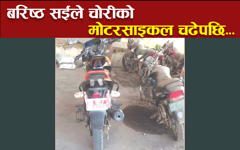 काठमाडौं । नेपाल प्रहरीका एक वरिष्ठ सइ लक्ष्मण महतराले दुई वर्षदेखि चोरीको मोटरसाइकल चढ्ने गरेको पाइएको छ ।