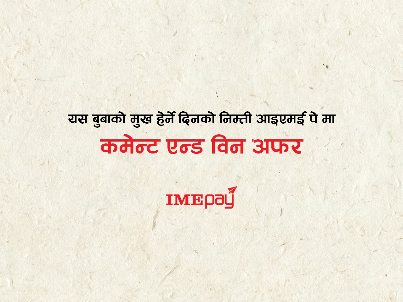 भदौ २६ देखी भदौ २८ गते सम्म चल्ने सो अफरमा सेवाग्राहीले आइएमई पेको फेसबुक पेजमा रहने “बुवाको मुख हेर्ने दिन” सम्बन्धित पोस्टमा आफु र आफ्नो बुवाको मिठा, रमाइला र यादगार पलहरूलाई समेटेर कमेन्ट लेख्ने र बाबा र आमा पनि राखेर पोस्ट गर्नुपर्नेछ ।