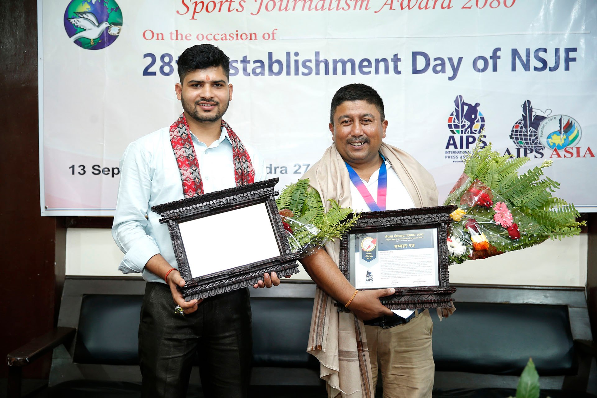 मञ्चले आफ्नो स्थापना दिवसको अवसरमा २०७१ सालदेखि अग्रज र २०७६ सालदेखि युवा खेल पत्रकारलाई सम्मान गर्दै आएको छ । सोही अनुसार मञ्चले स्थापना दिवसका अवसरमा बुधबार मञ्चका संस्थापक कोषाध्यक्ष समेत रहेका बोगटीलाई नगद २५ हजार नगर र सुवेदीलाई एक थान ल्यापटप, पुष्पगुच्छा र दोसल्ला ओडाएर सम्मान गरेको हो ।