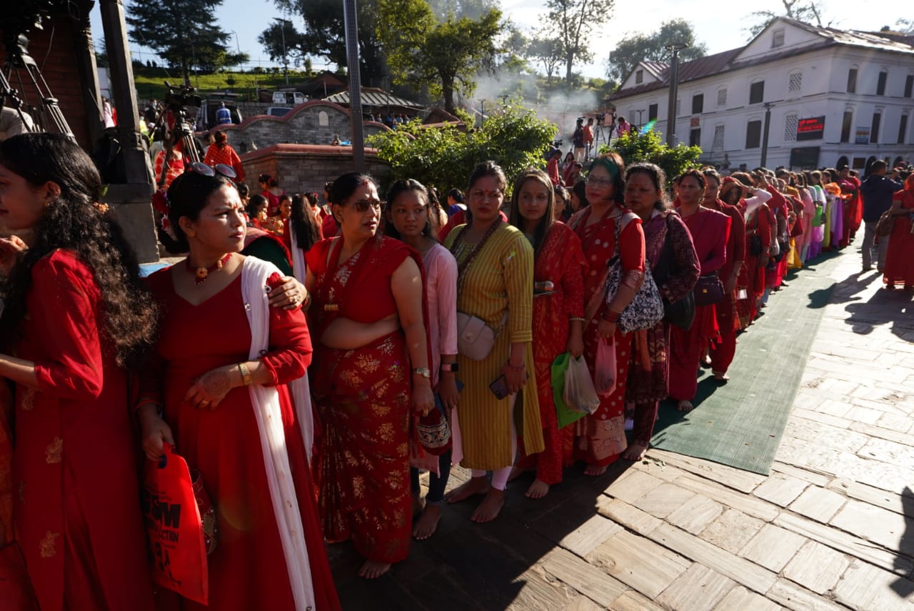 काठमाडौं । भाद्र शुक्ल तृतीयाका दिनमा मनाइने हरितालिका (तीज) पर्व आज देवादिदेव महादेवको पूजा आराधना गरी मनाइँदैछ । भाद्र शुक्ल तृतीयामा व्रत बसी शिव पार्वतीको पूजा, उपासना गरेमा पारिवारिक सुख, शान्ति र कल्याणको प्राप्ति हुने धार्मिक विश्वास छ ।