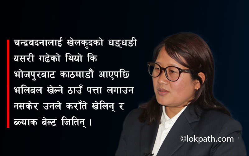 उनी अर्थात् नेपालकै पहिलो अन्तर्राष्ट्रिय महिला रेफ्री क्यान्डिडेट चन्द्र वदना राई । नेपाली खेल क्षेत्रमा मात्रै नभएर अन्तर्राष्ट्रिय परिवेशलाई मध्यनजर गर्दा पनि यस पेशामा महिलाहरुको संलग्नता न्यून देखिन्छ । त्यही न्यून संख्यामा पर्ने राईले घरेलु तथा अन्तर्राष्ट्रिय मैदान गरेर १ सय भन्दा बढी भलिबल प्रतियोगीताहरुमा रेफ्रीको भूमिका निर्वाह गरिसकेकी छिन् । उनको सिठीको तालमा खेल र खेलाडीहरु चल्छन्, उनी मैदानकी ‘डिसिप्लिन इन्चार्ज’ हुन् भन्दा फरक नपर्ला ।