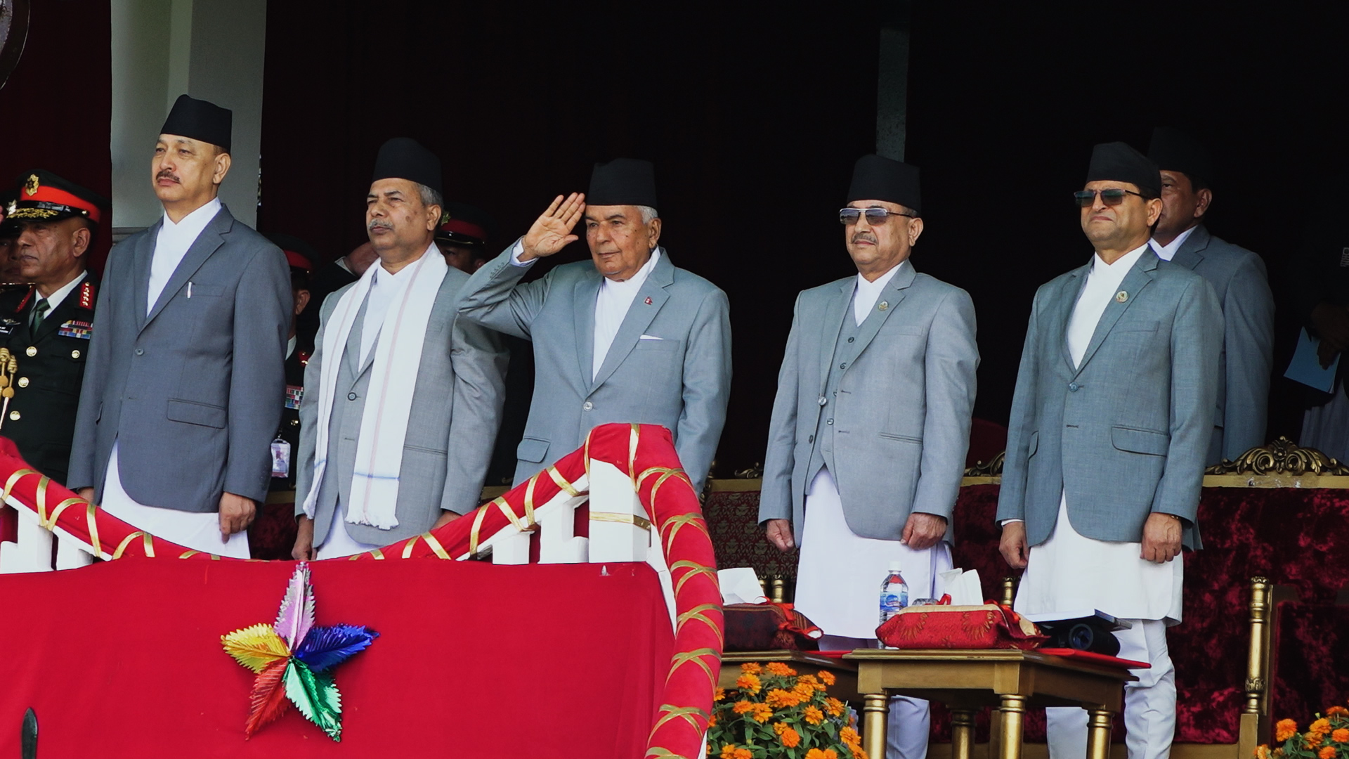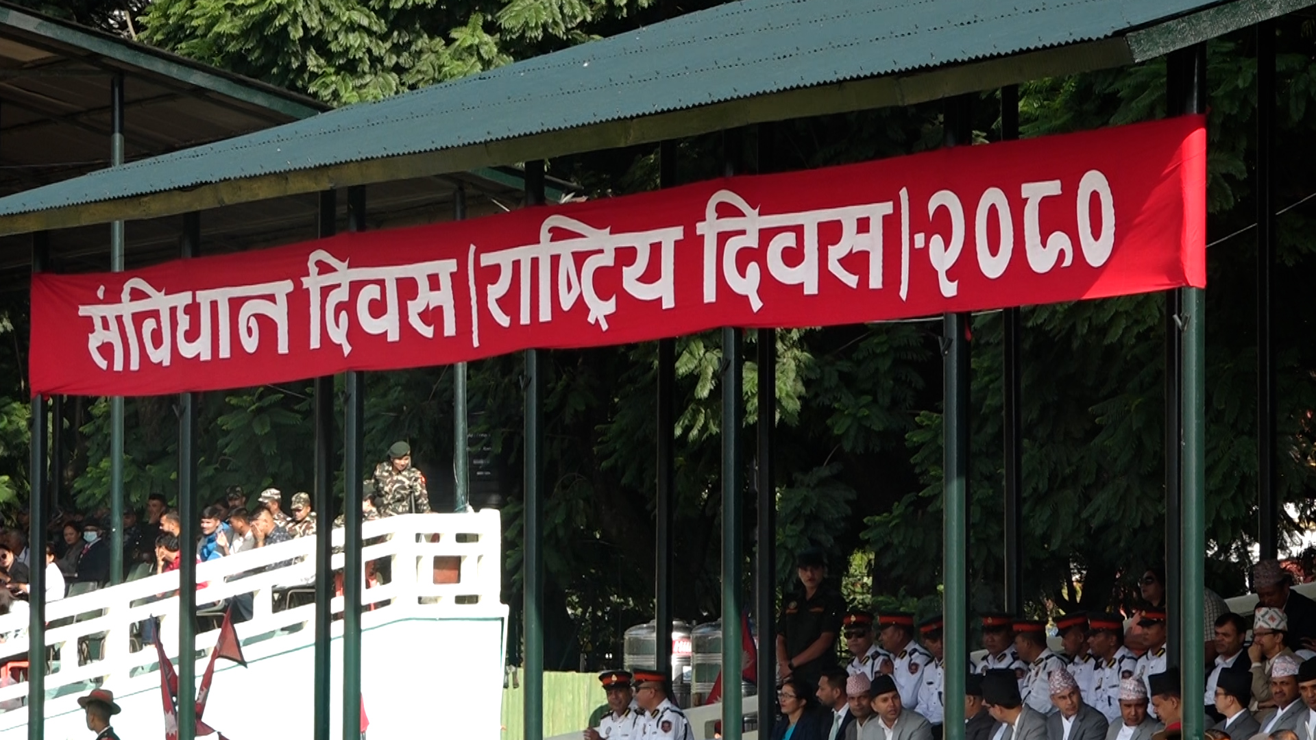 काठमाडौं । काठमाडौंको टुँडिखेलमा नवौँ संविधान दिनस (राष्ट्रिय दिवस) आज विशेष समारोहको आयोजना गरी मनाइएको छ ।
