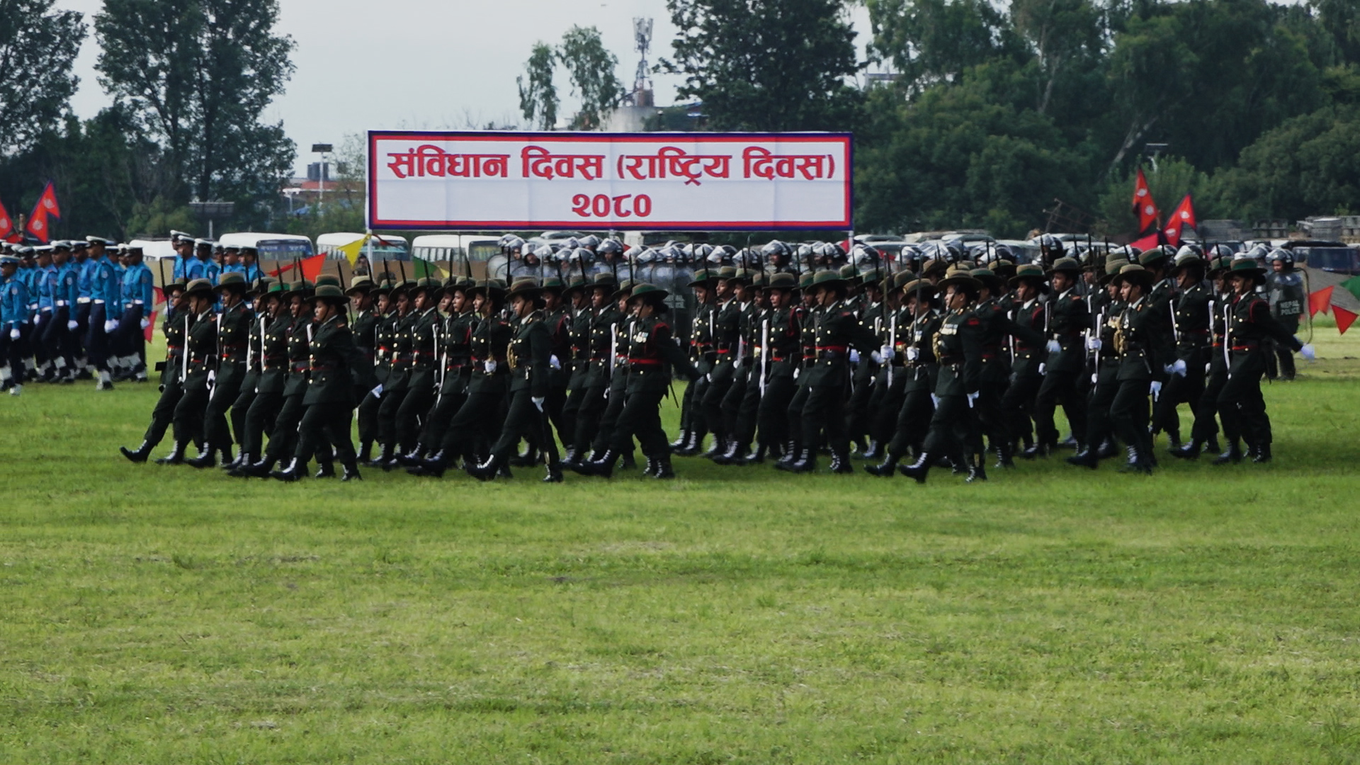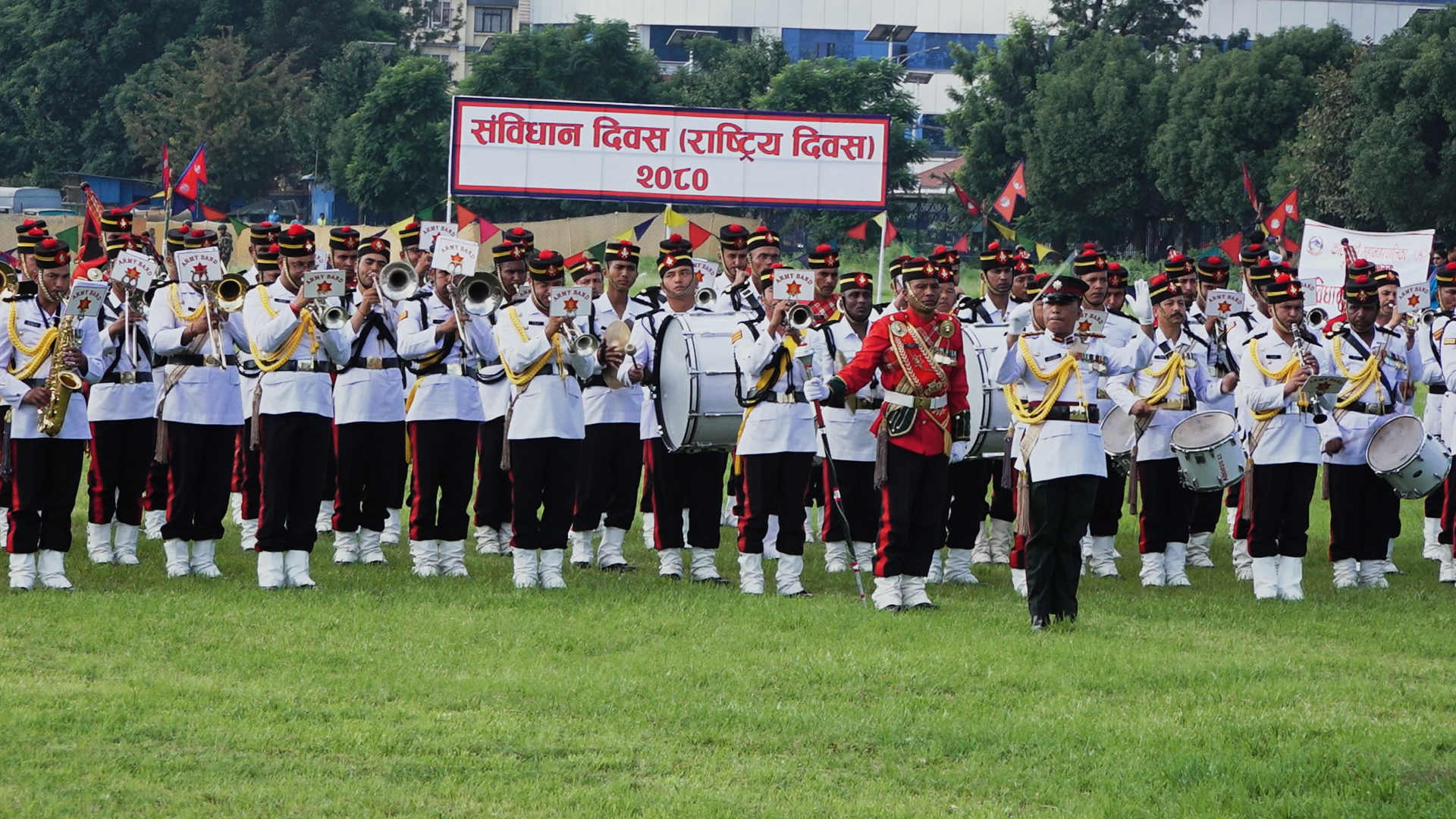 सरकारले नेपाली सेनाको हेलिकोप्टरबाट ‘संविधान दिवस, २०८०’ लेखिएको ब्यानर प्रदर्शन, पुष्पवृष्टि गरी ,टुँडिखेलबाट, रङ्गीचङ्गी बेलुन र शान्तिका दूत परेवा उडाउनुको साथै नेपाली सेना, नेपाल प्रहरी र सशस्त्र प्रहरी बलका विभिन्न टोलीबाट मार्चपास तथा सांगितिक प्रस्तुति एवं विशेष झाँकीको प्रदर्शन गरि भव्यताका साथ संविधान दिवस मनाएको छ ।