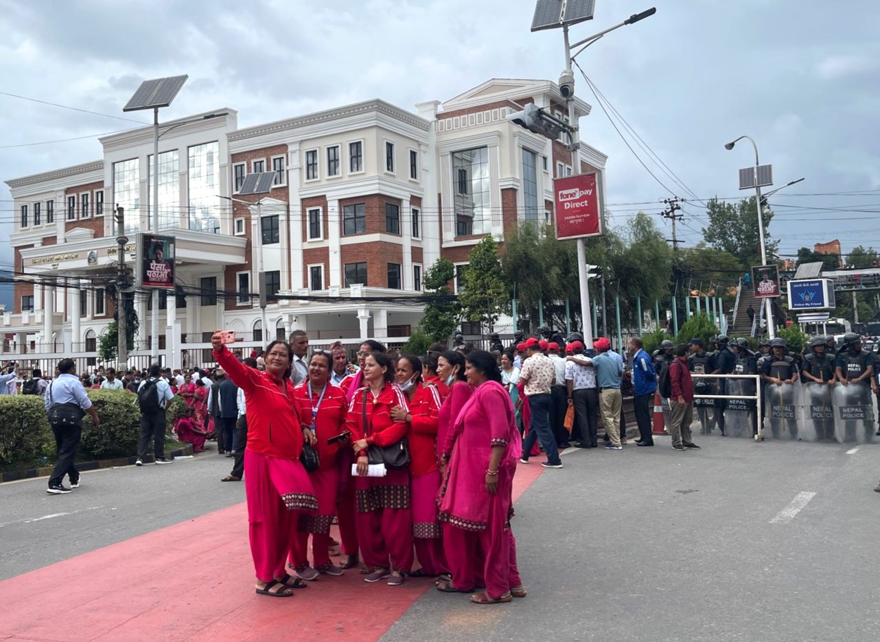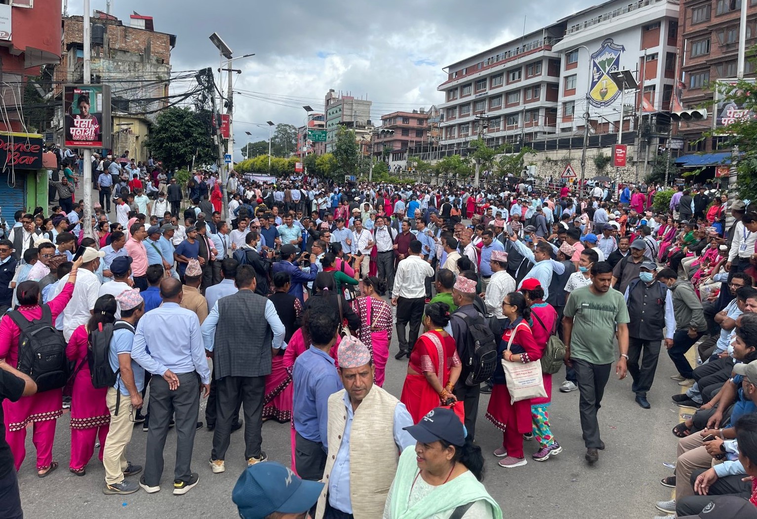 शिक्षकहरुले गरेको विरोध प्रदर्शनले काठमाडौंको ट्राफिक अस्तव्यस्त बनिरहेको छ । विभिन्न जिल्लाबाट शिक्षक-शिक्षिका गाडी रिजर्भ गरेर आन्दोलनका लागि काठमाडौं आएका छन् ।
