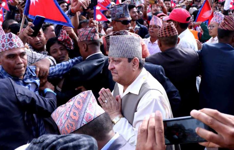 घन्टौं अगाडिदेखि शाहको प्रतिक्षा गरेका स्थानीयहरूले उनलाई नेपालको राष्ट्रिय झण्डासहित स्वागत गरेका थिए ।