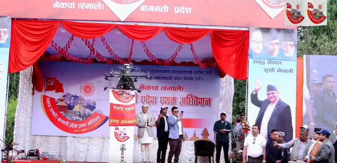 काठमाडौं । नेकपा एमालेको बागमती प्रदेश अधिवेशन काठमाडौंमा सुरु भएको छ । काठमाडौंको भृकुटीमण्डपमा ड्रोन उडाएर र रिमोटबाट दियो बालेर कार्यक्रम उदघाटन गरिएको हाे ।