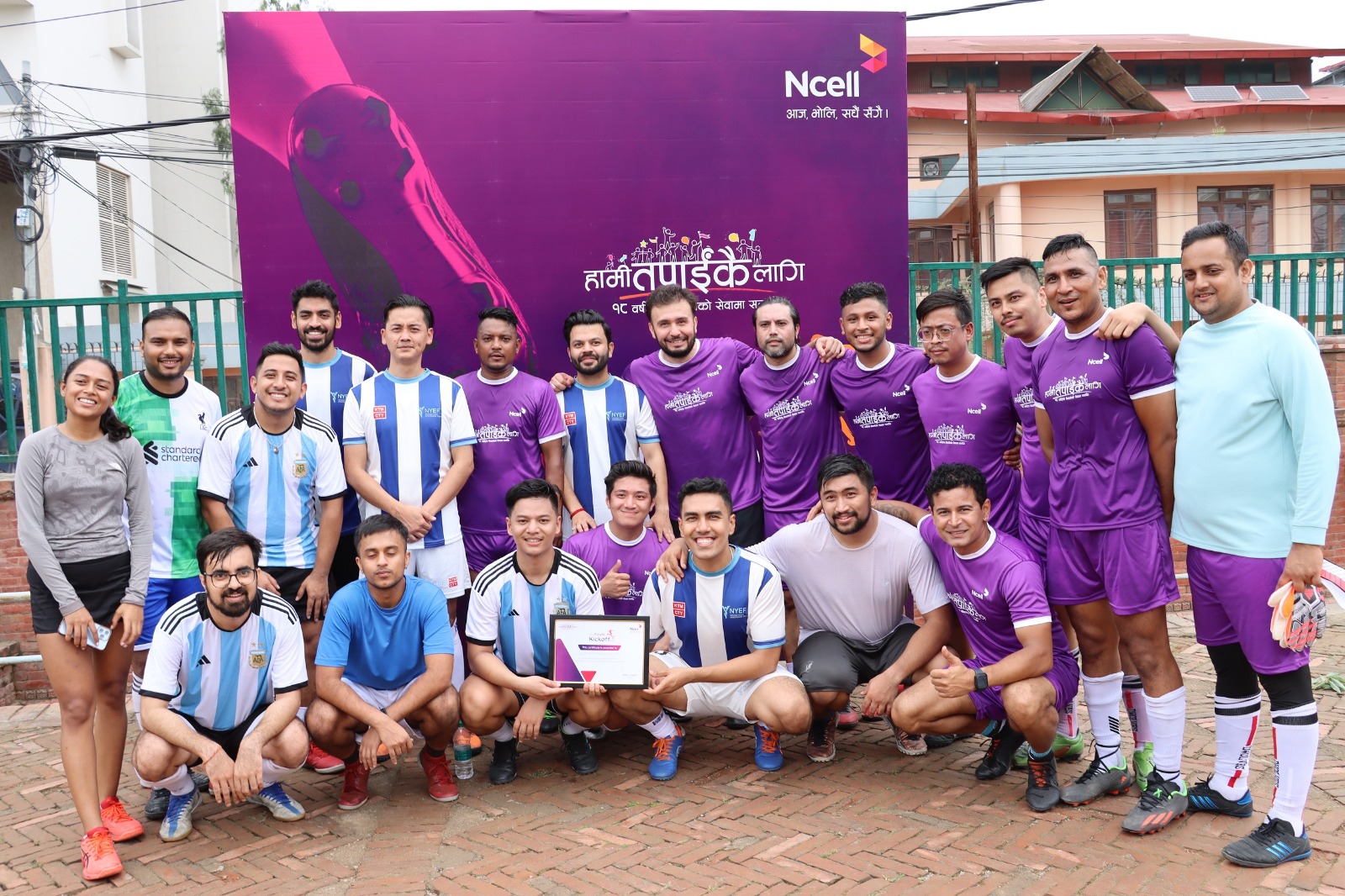 काठमाडौं । एनसेल आजियाटा लिमिटेडले आफ्नो १८ औँ वार्षिकोत्सवको अवसरमा काठमाडौंको लैनचौर खेलमैदानमा ‘पर्पल किकअफ’ मैत्रिपूर्ण फुटबल खेल आयोजना गरेको छ ।