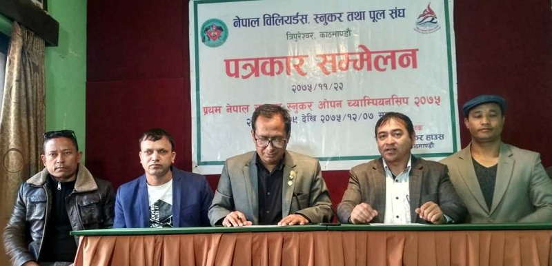नेपाल विलियर्डस स्नुकर तथा पुल संघको तत्वाधानमा हुने प्रतियोगिता यही फागुन २९ गतेबाट चैत ७ गतेसम्म हुने स्नुकर संघका अध्यक्ष सरोज कुमार मुल्मीले पत्रकार सम्मेलनमा जानकारी गराए।