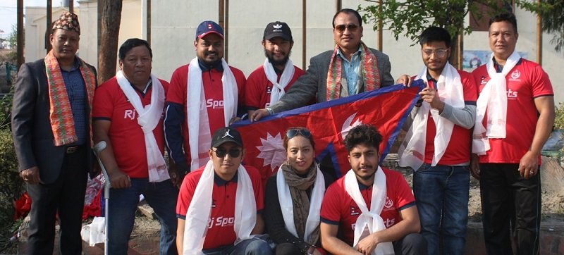 व्हवील चेयर क्रिकेट संघ नेपालका अध्यक्ष छुल्टिम ग्याल्जिङ शेर्पाको नेतृत्वमा जाने टोलीको फिजियोमा अञ्जना श्रेष्ठ तथा अफिसियलमा राजेश शाह र शरद पौड्याल छन् । नेपालले मार्च १३, १४ र १५ तारिखमा भारतको राष्ट्रिय स्ट्यान्डिङ टिमसँग प्रतिस्पर्धा गर्ने अध्यक्ष शेर्पाले जानकारी गराए ।