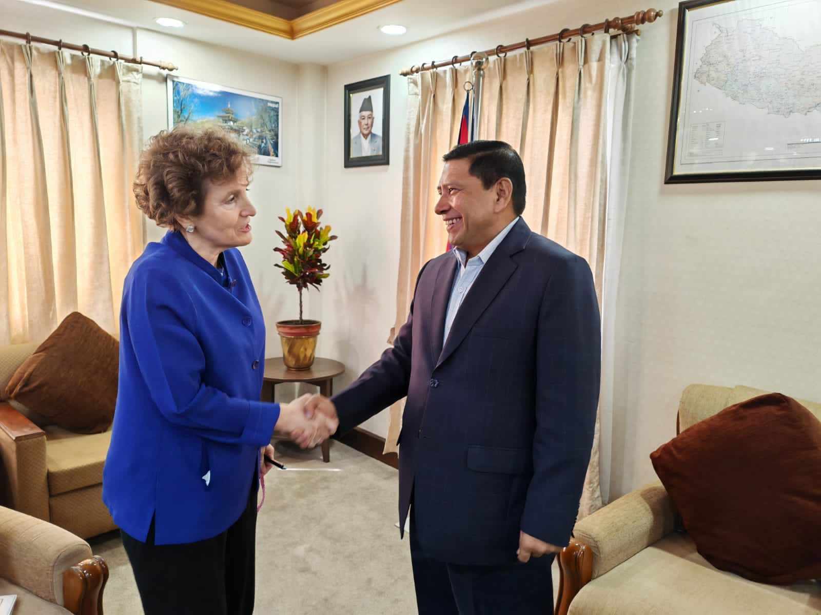 काठमाडौं। उपप्रधानमन्त्री एवम् गृहमन्त्री नारायणकाजी श्रेष्ठ र एमसीसी, अमेरिकाका सिईओ एलिस अलब्राइटबीच मंगलबार गृह मन्त्रालयमा शिष्टाचार भेटघाट सम्पन्न भएको छ।