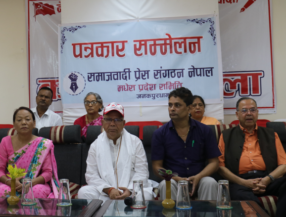 समाजवादी प्रेस सङ्गठन मधेस प्रदेशले आज जनकपुरमा आयोजना गरेको पत्रकार सम्मेलनमा अध्यक्ष नेपालले अशान्ति मच्चाउने मनसायले देशका विभिन्न भू–भागमा सामाजिक सद्भाव प्रतिकूलका क्रियाकलाप भइरहेकाप्रति चिन्ता व्यक्त गर्दै त्यस्ता संविधानविरोधी काममा नलाग्न सबैलाई आग्रह गरे ।