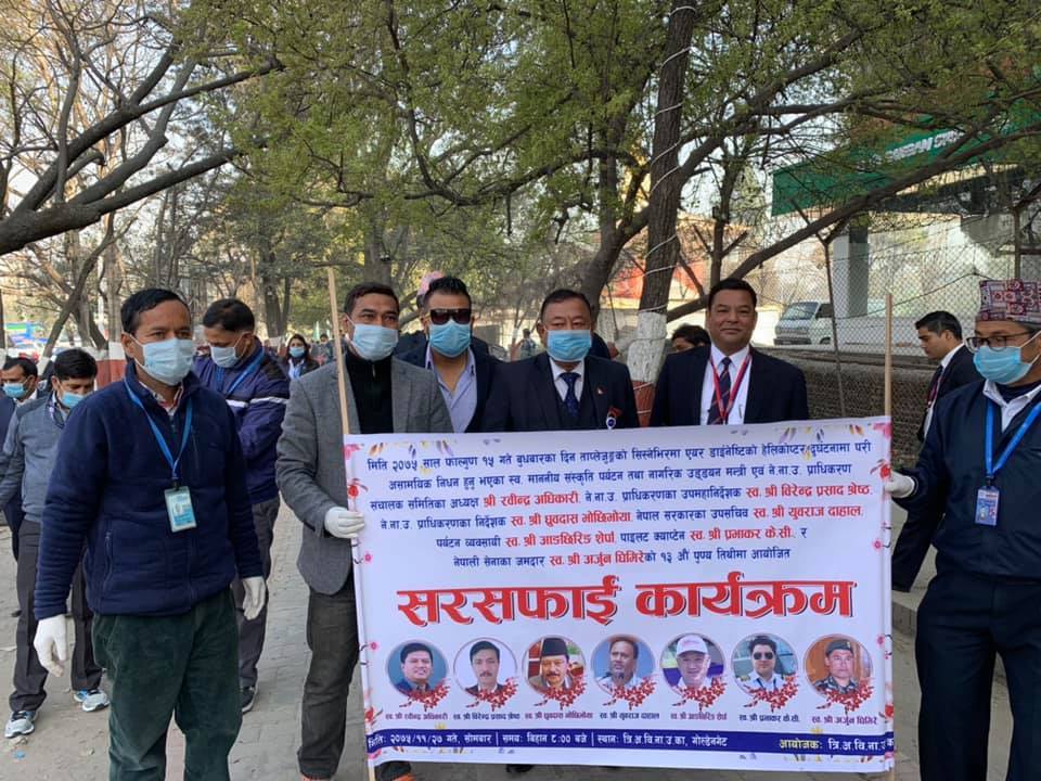 विमानस्थलका महाप्रबन्धक राजकुमार क्षेत्रीले विमानस्थल परिसरमा मन्त्री अधिकारीलगायतको सम्झनामा रुद्राक्षको बिरुवा रोपे । सोही अवसरमा विमानस्थल गेट बाहिरका बस्तीका घरमा पुगेर देशको मुहार विमानस्थल र पवित्र धार्मिकस्थल पशुपति क्षेत्रको सरसफाइ गरौँ भन्ने सन्देशसहित माइकिङ गरिएको महाप्रबन्धक क्षेत्रीले बताए ।