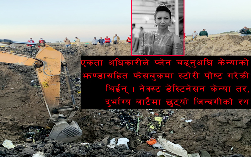 आइतवार इथियोपियाको राजधानी अदिस अबाबाबाट केन्याको लागि उडेको विमान दुर्घटनामा गोरखा घर भई इथियोपियाको विश्व खाद्य कार्यक्रम (डब्ल्युएफपी) मा कार्यरत एकता अधिकारीको मृत्यु भयो । एकता अधिकारीसँगै विमानमा यात्रारत चालक दलका ८ सदस्यसहित सबै १ सय ५७ जनाको निधन भयो ।