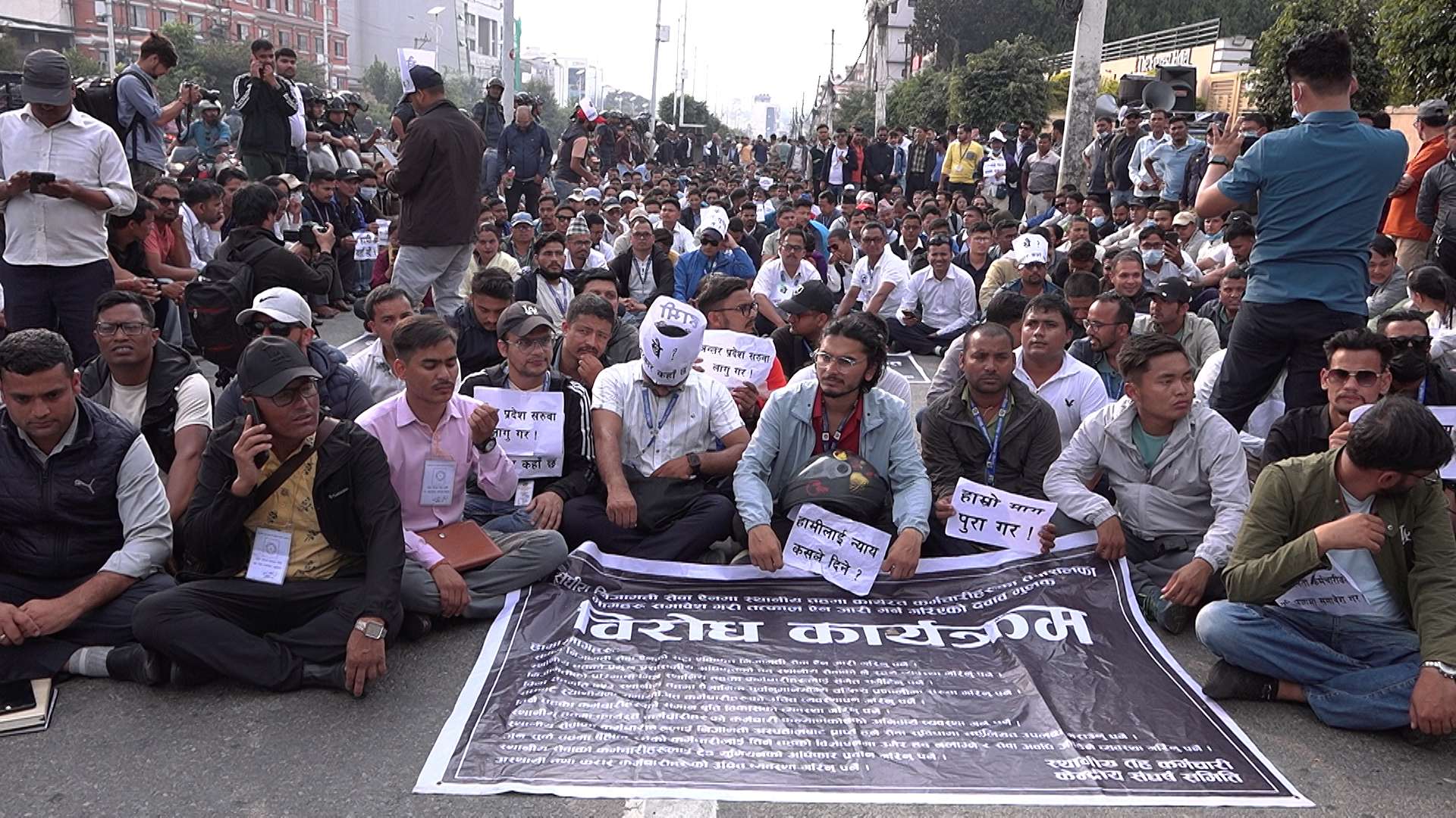 काठमाडौं । संघीय निजामती विधेयकमा असन्तुष्ट स्थानीय तहका कर्मचारीहरुले मंगलबार पनि राजधानिमा आफ्नो प्रदर्शन जारी राखेका छन् ।