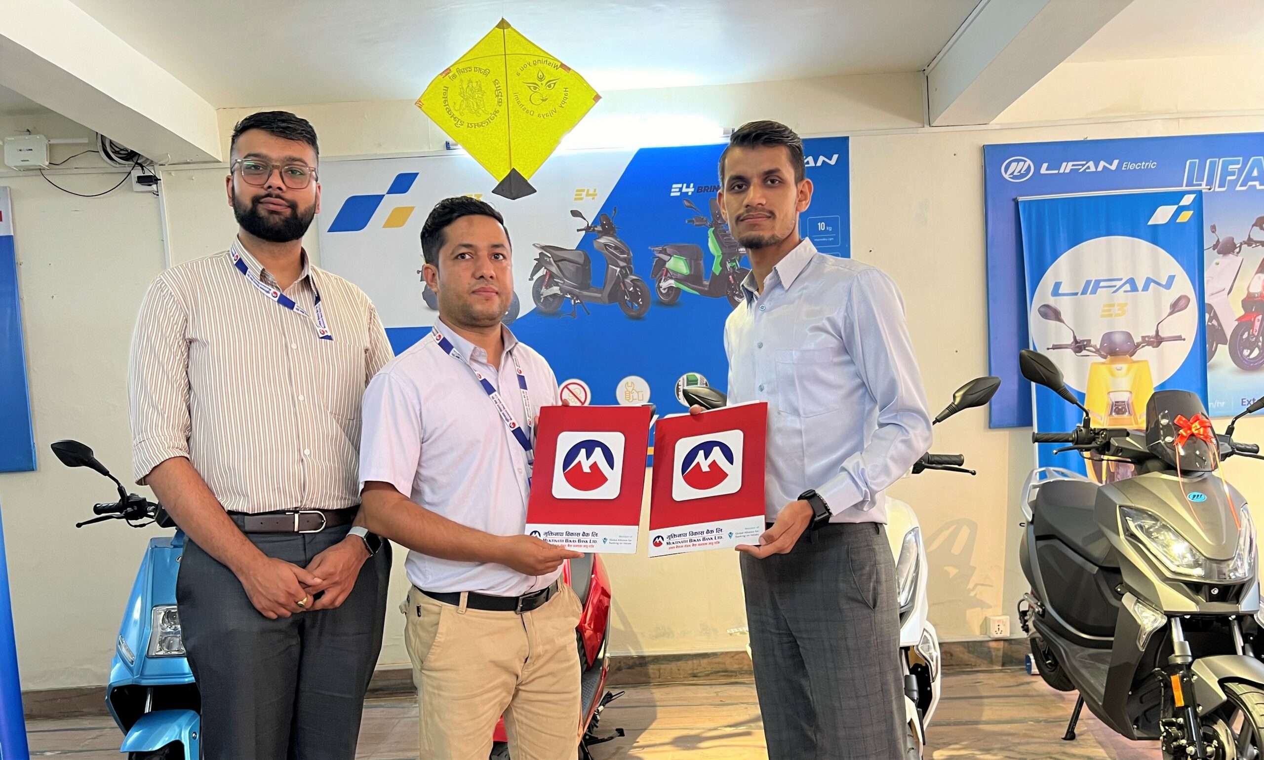 काठमाडौं । मुक्तिनाथ विकास बैंकले आफ्नो ग्राहकहरुलाई थप सेवा दिन नागपोखरीमा मूख्य सोरुम रहेको नेपालको लागि लिफान इलेक्ट्रीक स्कुटरको आधिकारिक विक्रेता “पिनाकल मोटोराड प्रा. लि ” सँग लिफान नेपालको इभी स्कुटरहरुको खरिदमा छुट प्रदान गर्ने गरी व्यवसायिक सम्झौता गरेको छ ।