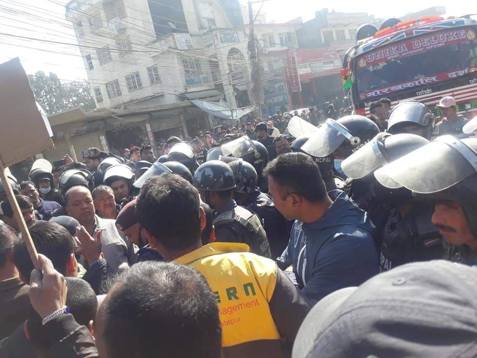 सडक बनाउने ठेकेदारको लापरवाही र सडकमा पानी समेत नहालेको भन्दै स्थानियहरुले सडकमा स्थानियहरु बिचबाटोमै बसेर सडक अवरोध गरेपछि स्थानिय र सुरक्षाकर्मीबीच विवाद समेत भएको थियो ।