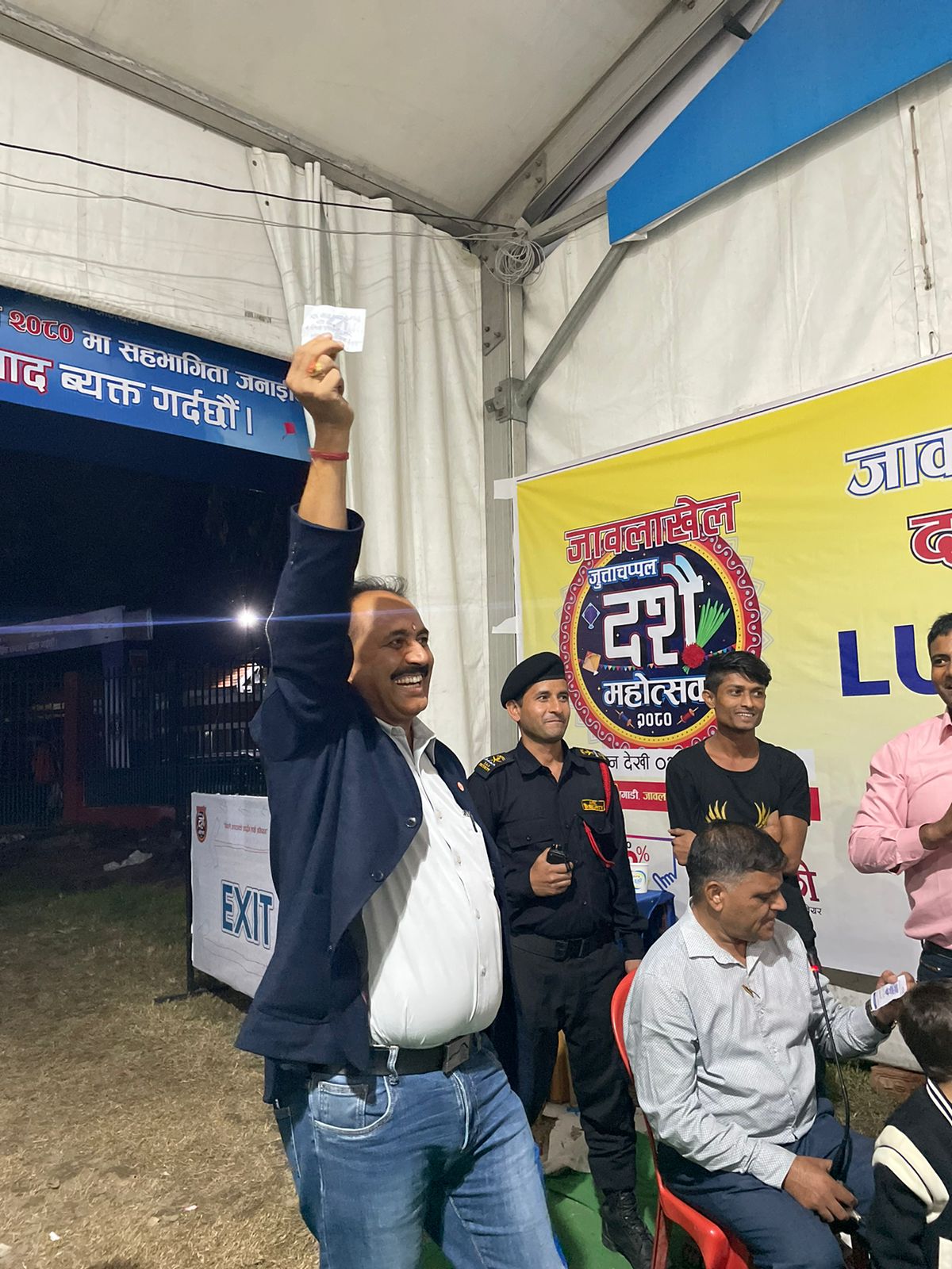 उक्त लक्की ड्र कार्यक्रम जुत्ता चप्पल दशैं महोत्सव आयोजना गरिएको स्थान जावलाखेल फुटबल मैदानमा एक कार्यक्रम बिच घोषणा गरिएको हो ।