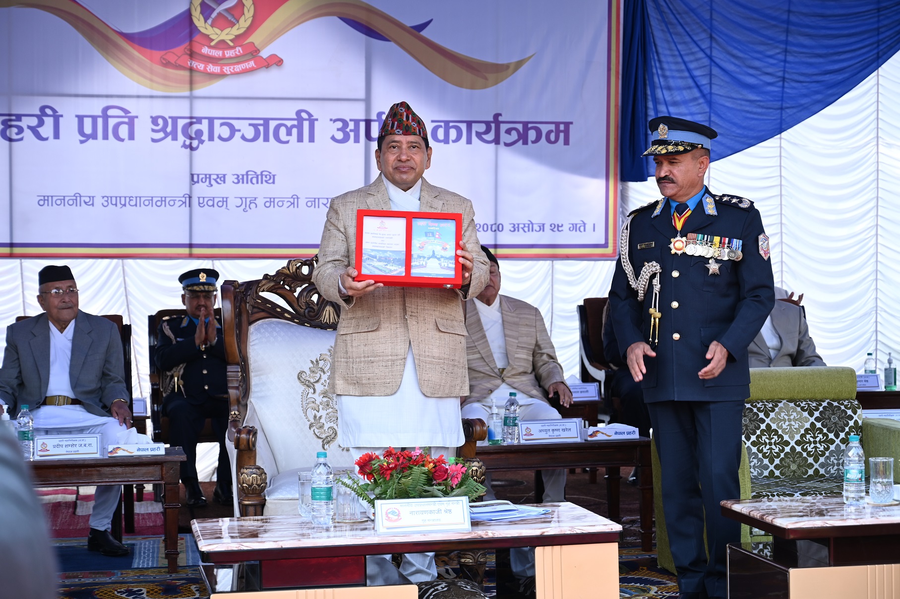 साधन स्रोतको अभावमा पनि राज्यले सुम्पेको जिम्मेवारीलाई नेपाल प्रहरीले निष्ठापूर्वक तथा प्रविधिसँग प्रभावकारी मिश्रण गरी छिटो, छरितो र गुणस्तरीय सेवा प्रवाह सुनिश्चित गर्दै आएको उनले बताए । आमनागरिक र राज्यले सामना गरेको हरेक विषम परिस्थितिलाई निस्तेज तुल्याउन नेपाल प्रहरीका प्रत्येक सदस्यहरूले पेशागत कर्तव्यपरायणतामा उच्च मनोबलका साथ खटिदै आएको उनले चर्चा गरे ।
