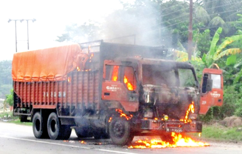 Hetauda: An unidentified group has torched a truck (Na 5 Kha 7411) heading towards Hetauda from Kathmandu at Palung of Thaha municipality along Tribhuvan highway on Wednesday night.