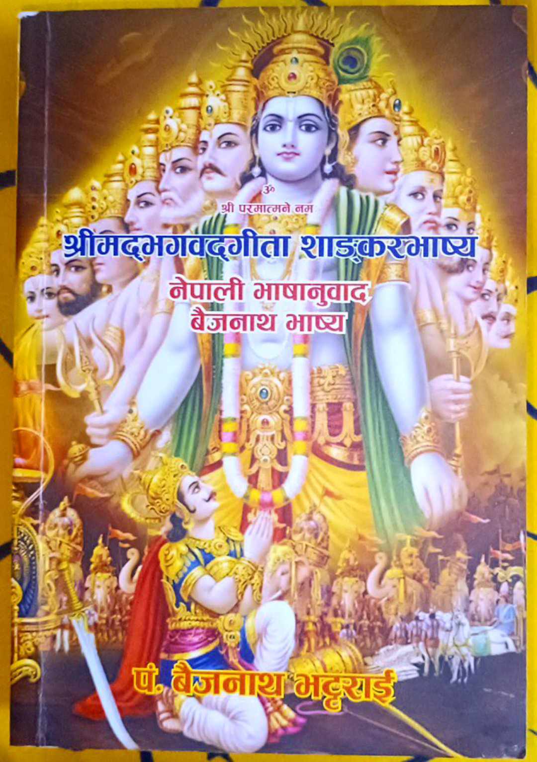 काठमाडौं । विद्वान पण्डित आचार्य बैजनाथ भट्टराईद्वारा लिखित पुस्तक ‘श्रीमद्भागवतगीता शाङकरभाष्य’ को नेपाली अनुवाद बजारमा आएको छ ।