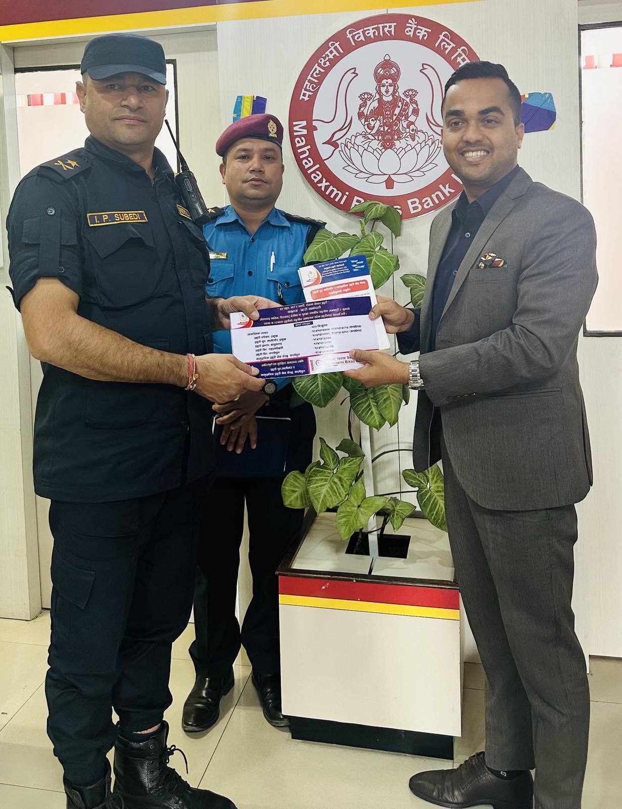 बैंकको केन्द्रीय कार्यालय, दरबारमार्गले प्रहरी वृत्त मालीगाँउलाई चाडपर्वको समयमा हुनसक्ने अपराधिक क्रियाकलापलाई नियन्त्रण गर्न, सार्वजनिक सुरक्षा तथा अमनचयन कायम राख्न, सम्भावित अपराधको रोकथाम, तथा नियन्त्रण कार्यमा सहयोग पु¥याउने उद्देश्यले जनचेतनामुलक पुस्तिका र आवश्यक सम्पर्क नम्बर सहितको स्टिकर हस्तान्तरण गरेको हो ।