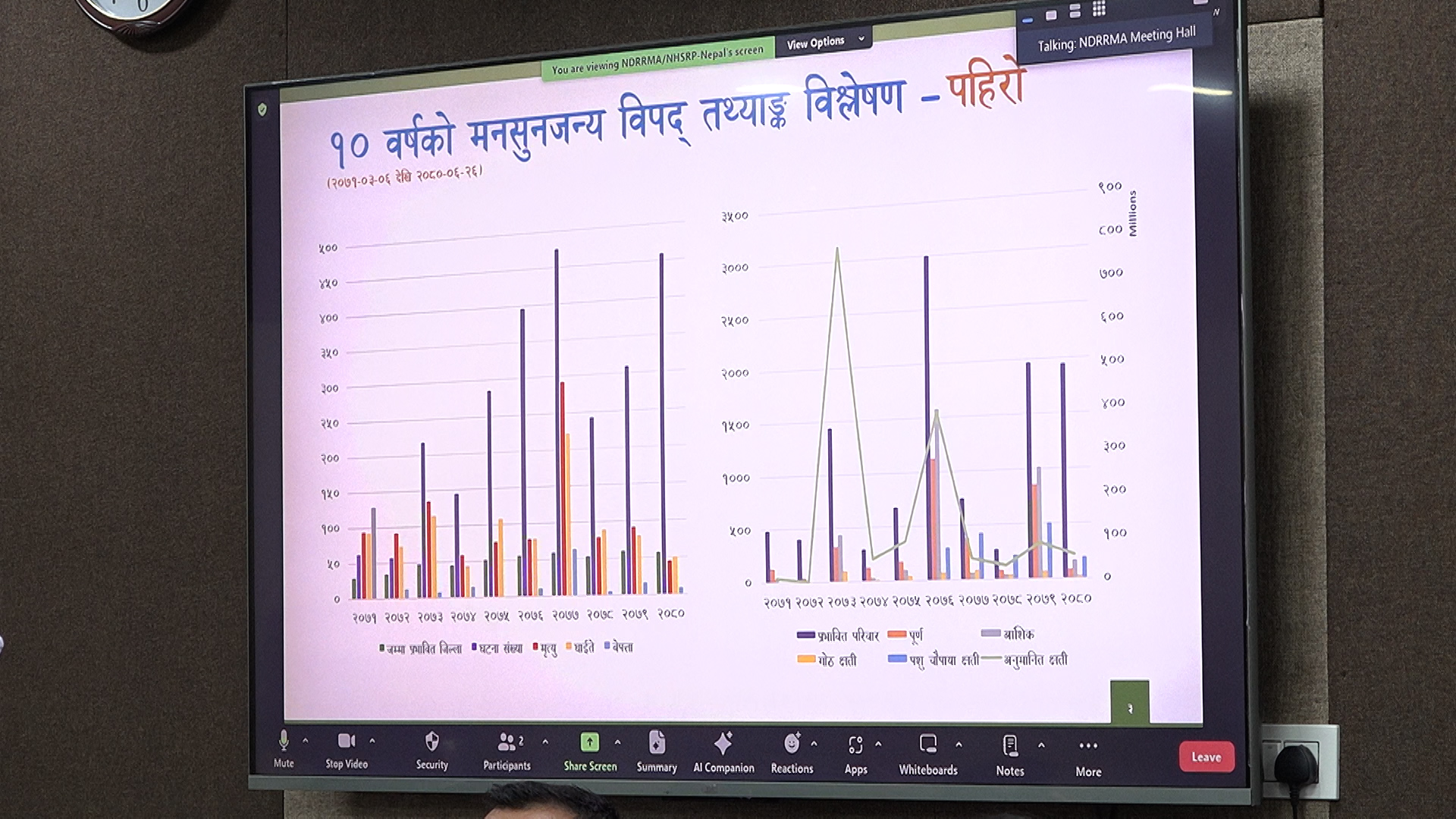 मनसुन अवधिमा पहिरोका ४५९, भारी वर्षाका १६८, बाढीका १४२ र चट्याङका १२३ घटना गरी कूल ८९२ घटना अभिलेख भएका छन् । यी विपद्का घटनामा ९२ जनाको मृत्यु भएको थियो भने १६८ जना घाइते हुनु भएका थिए । ३० जना नागरिक बेपत्ता छन् ।