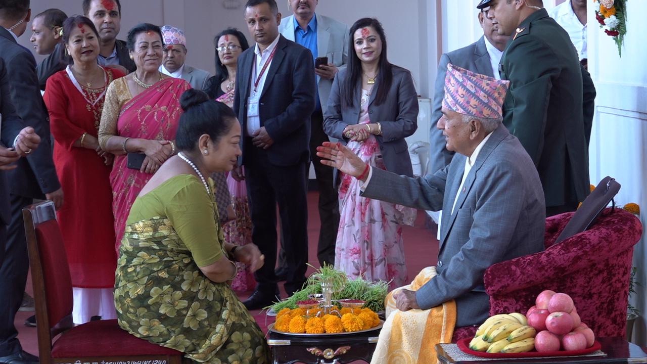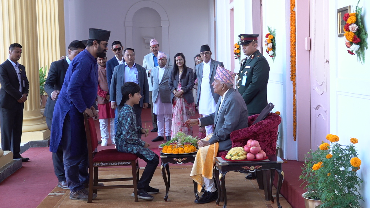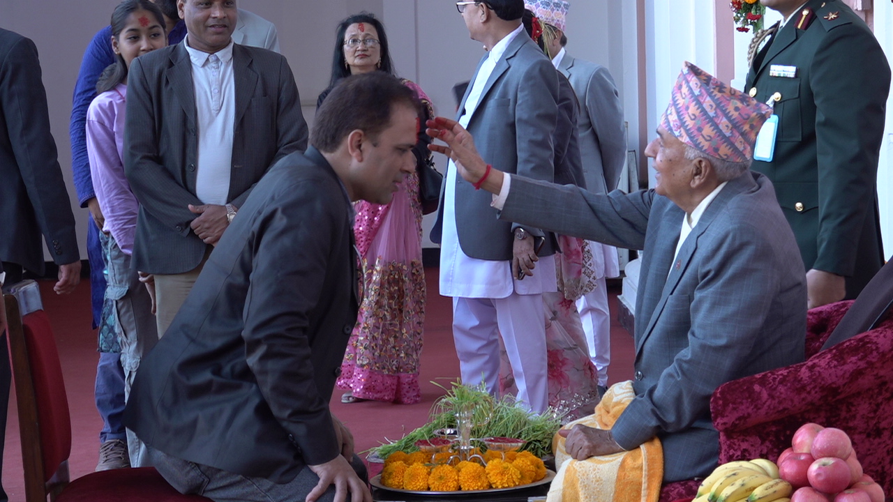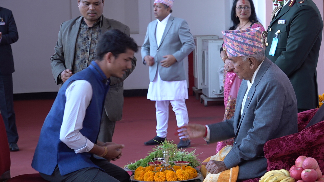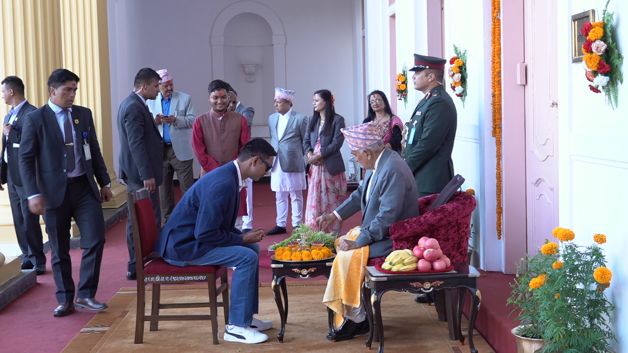 काठमाडौं । राष्ट्रपति रामचन्द्र पौडेलले सर्वसाधारणलाई विजयादशमीको टीका लगाइदिएका छन्। सर्वसाधारणका लागि छुट्टैछट्टै समयको व्यवस्थापन गरेर शीतलनिवासमा टीका र प्रसाद ग्रहणको व्यवस्था मिलाएको थियो।
