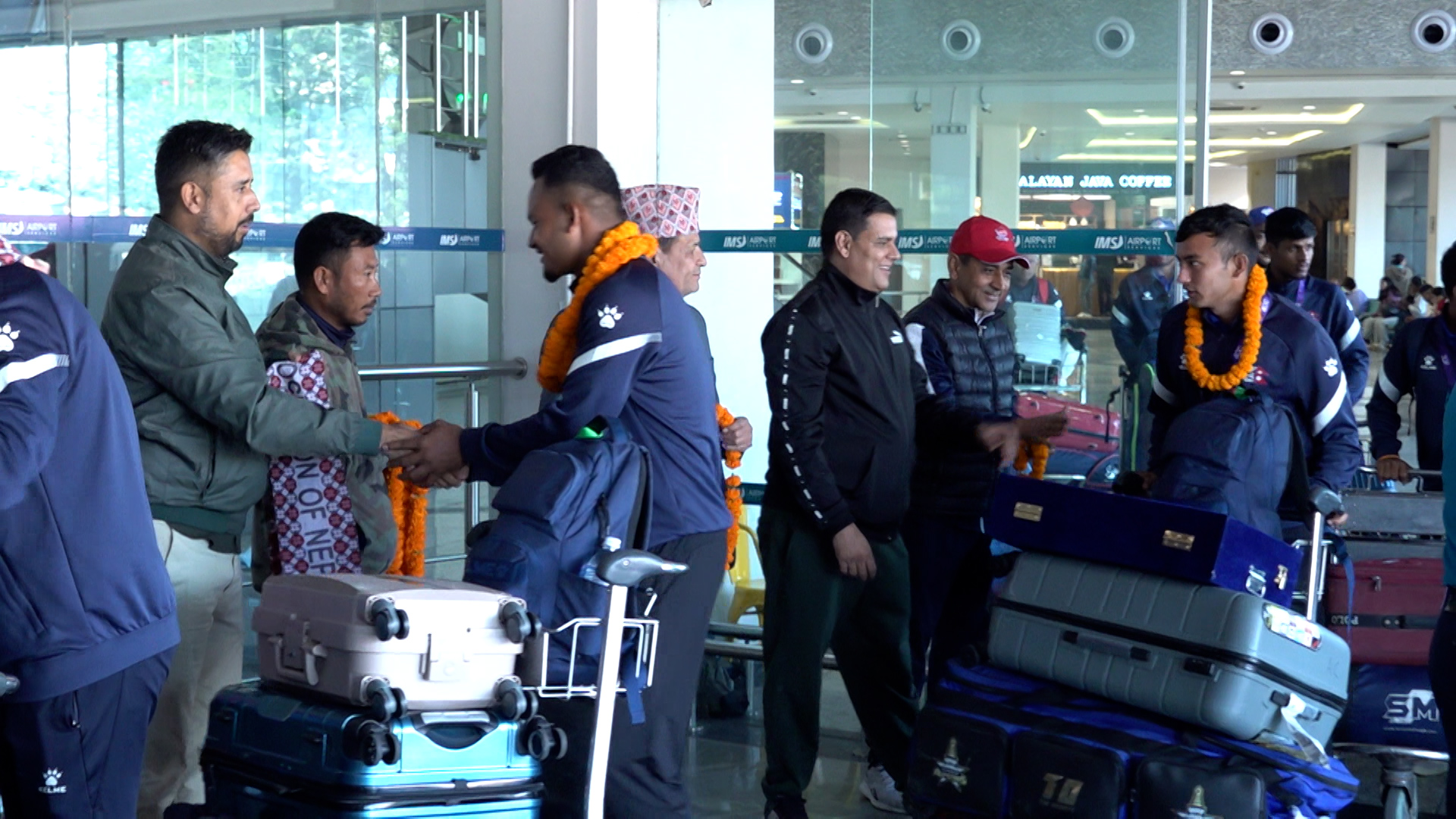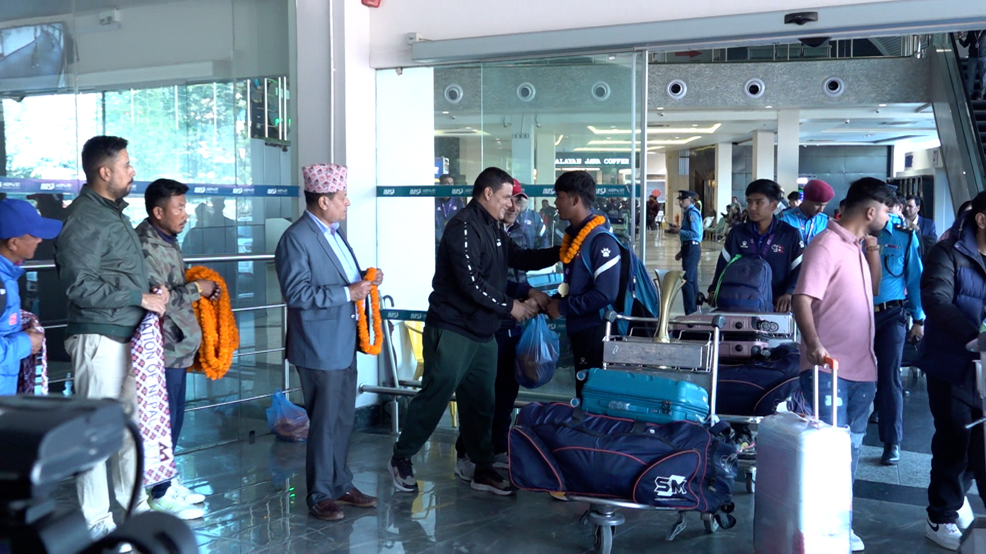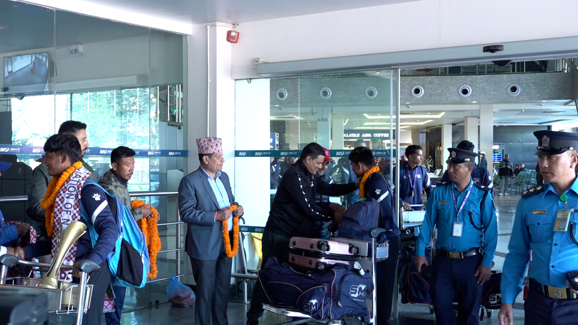 नेपाली टोलीलाई त्रिभुवन विमानस्थलमा भव्य स्वागत गरिएको छ । उनीहरुलाई विमानस्थलमा क्यानका पदाधिकारीहरुले फुलमाला खादाले स्वागत गरेका थिए ।