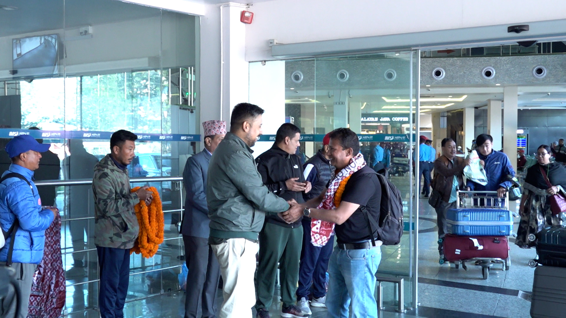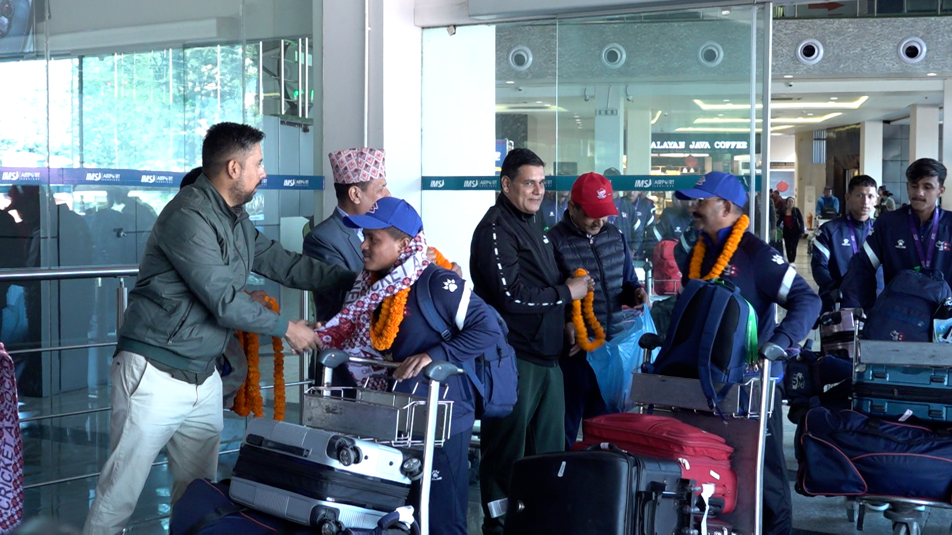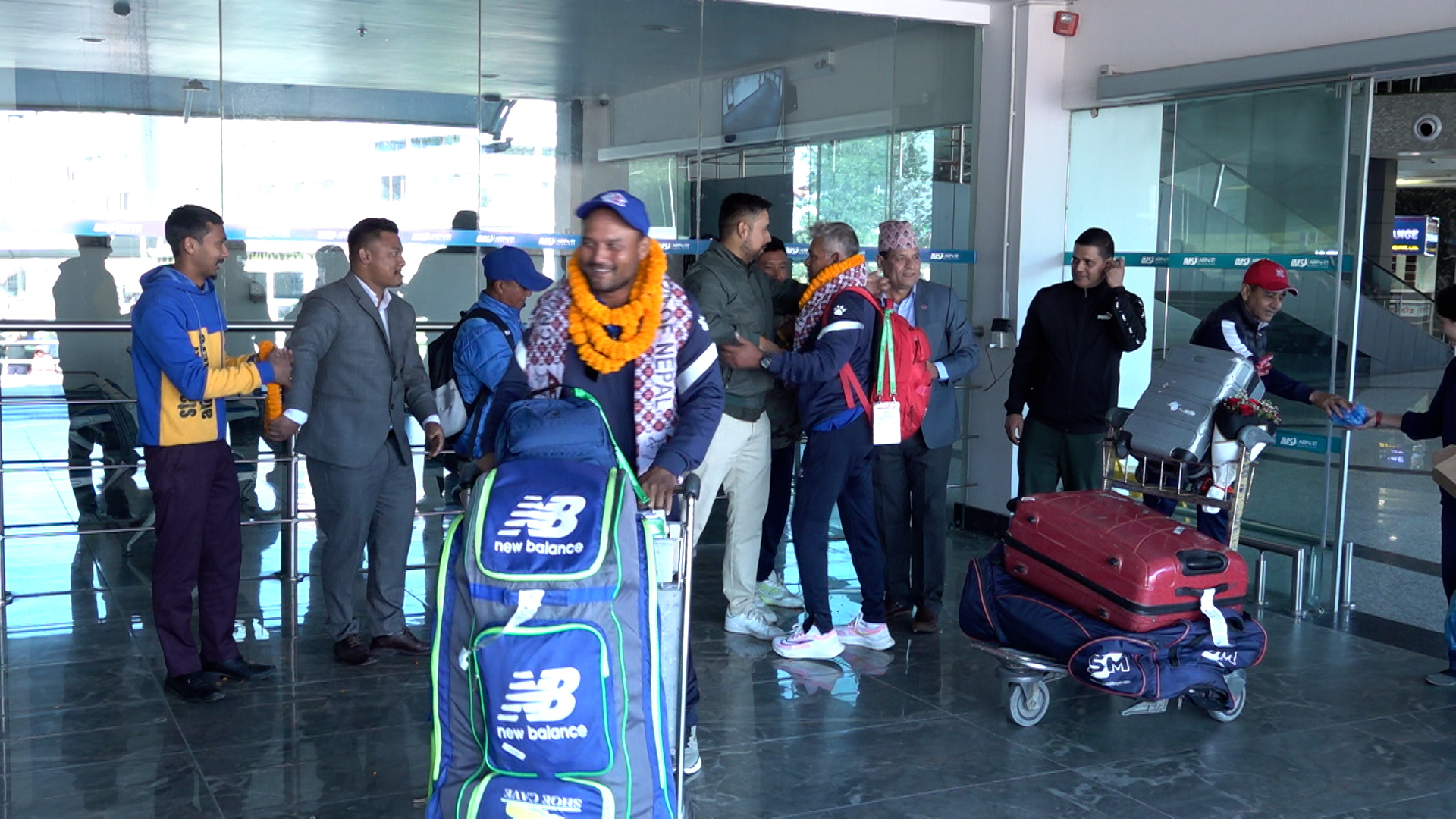 नेपाली टोलीलाई त्रिभुवन विमानस्थलमा भव्य स्वागत गरिएको छ । उनीहरुलाई विमानस्थलमा क्यानका पदाधिकारीहरुले फुलमाला खादाले स्वागत गरेका थिए ।