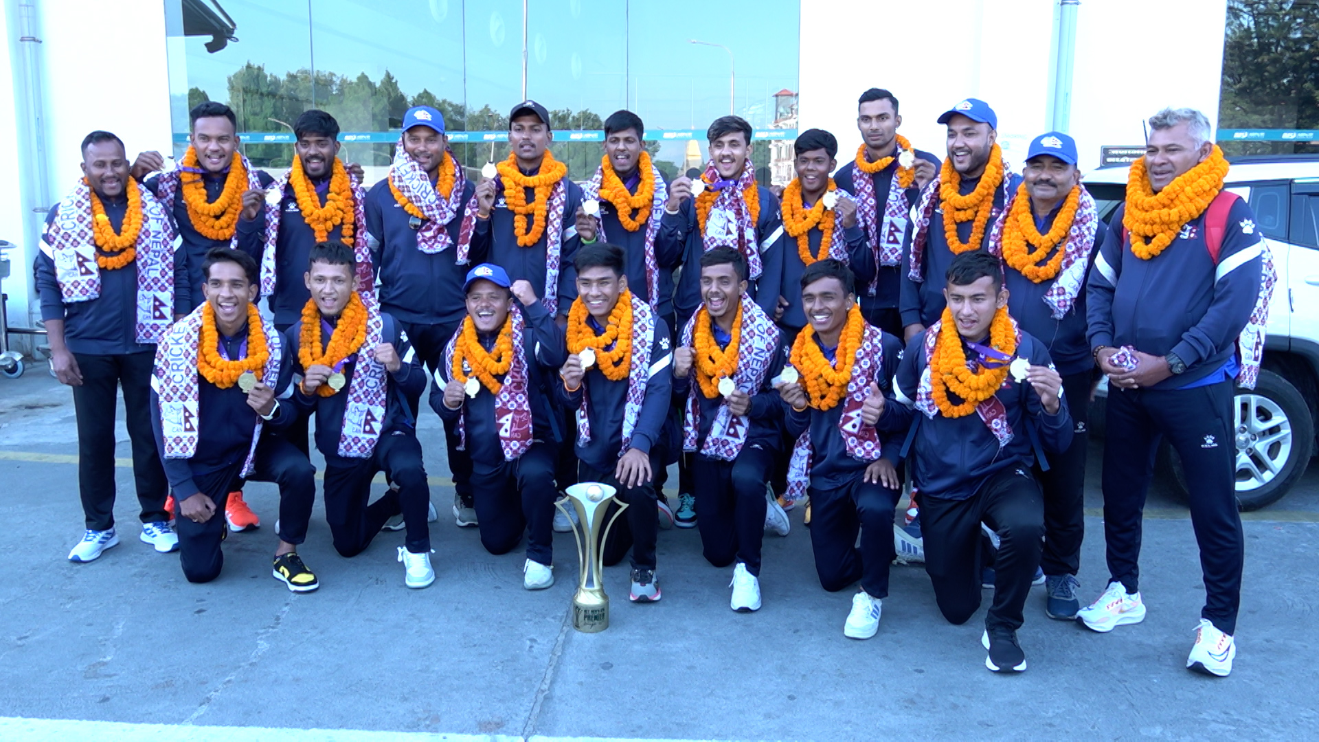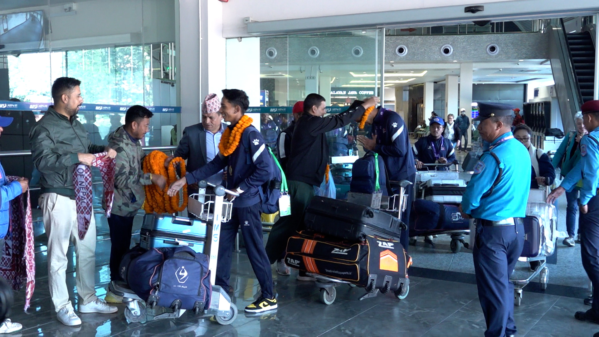 उपाधि विजेता यु-१९ टिमको विमानस्थलमा भव्य स्वागत