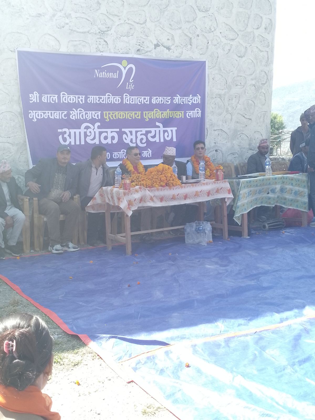 नेशनल लाईफले ग-यो भुकम्पनबाट क्षतिग्रस्त विद्यालयलाई आर्थिक सहयोग