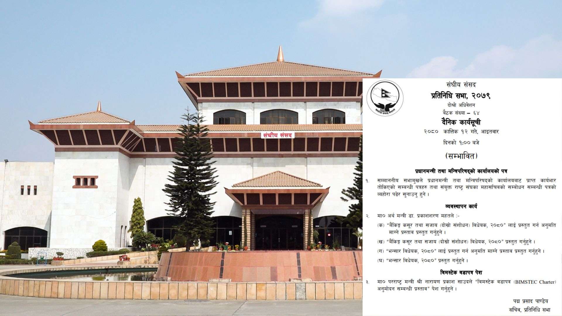 उनले “बैंकिङ्ग कसूर तथा सजाय (दोस्रो संशोधन) विधेयक २०८०“ र “भन्सार विधेयक, २०८०“ लाई पेस गर्नेछन् ।