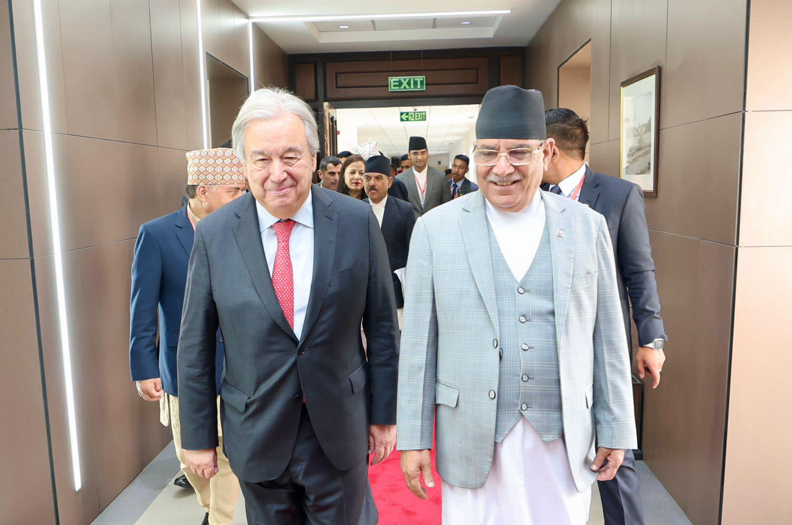 आइतबार प्रधानमन्त्री प्रचण्डको मैत्रीपूर्ण निमन्त्रणामा नेपालको चार दिने औपचारिक भ्रमणमा आएका महासचिव गुटेरेसलाई प्रधानमन्त्रीले सिंहदरबारमा स्वागत गरेका थिए ।