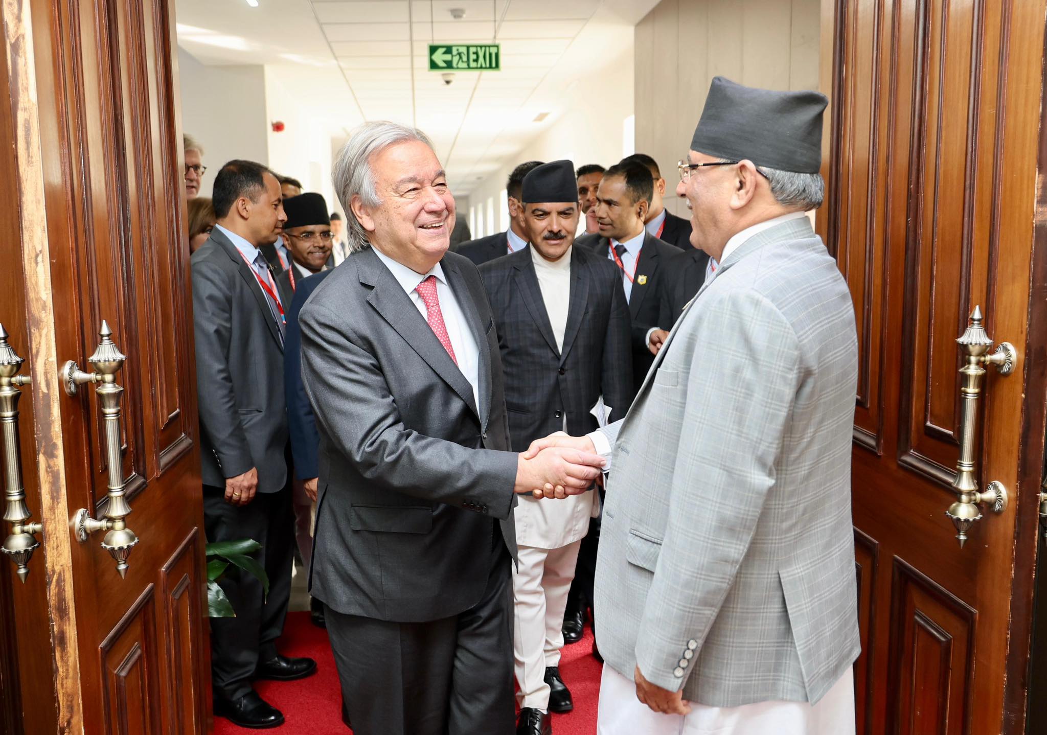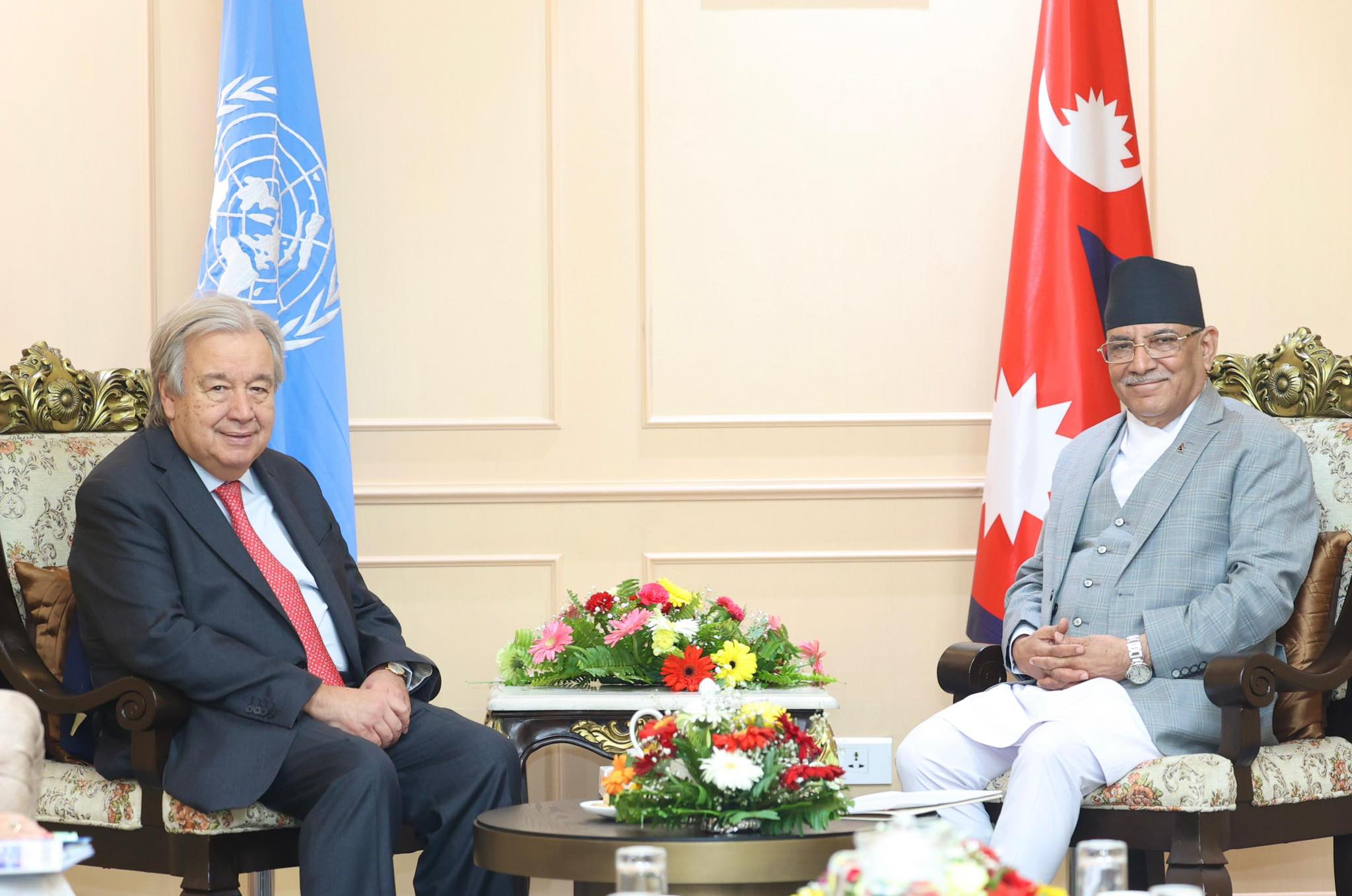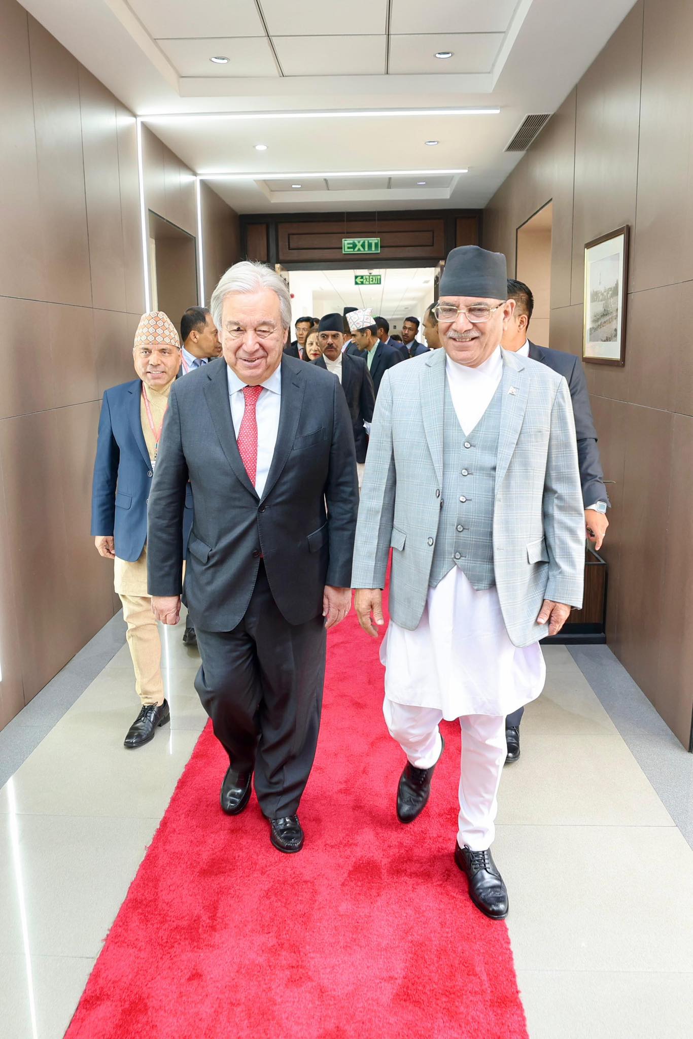 आइतबार प्रधानमन्त्री प्रचण्डको मैत्रीपूर्ण निमन्त्रणामा नेपालको चार दिने औपचारिक भ्रमणमा आएका महासचिव गुटेरेसलाई प्रधानमन्त्रीले सिंहदरबारमा स्वागत गरेका थिए ।