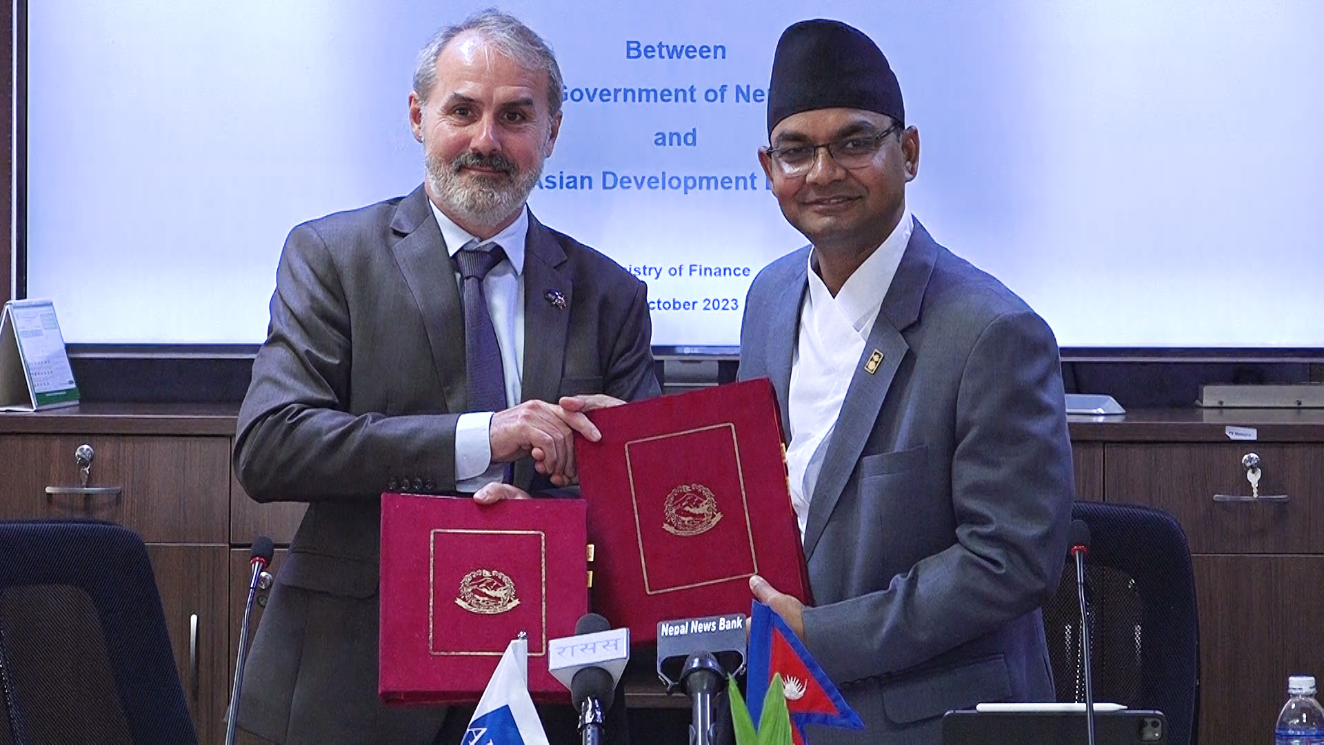 आज एडिबी र नेपाल सरकारबीच अर्थमन्त्रालयमा ग्रामीण सम्पर्क सुधार परियोजना कार्यान्वयनका लागि १० करोड अमेरिकी डलर अर्थात १३ अर्ब रुपैयाँ बराबरको सहुलियतपूर्ण ऋण सम्झौतामा हस्ताक्षर भएको हो ।
