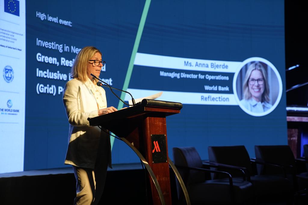 “नेपाललाई थप दिगो, उत्थानशील र समावेशी अर्थतन्त्रतर्फ रणनीतिक कदम चाल्न सहयोग गर्न पाएकोमा विश्व बैंक गर्व गर्दछ । नेपालको ग्रिडसम्बन्धी अवधारणाले विकास र वृद्धिलाई केन्द्रमा राखेको छ । त्यो वृद्धिले चरम गरीबी घटाउँछ, संरचनात्मक असमानता कम गर्छ, वातावरण संरक्षण गर्छ, र विकास प्रक्रियालाई दिगो र उत्थानशील बनाउँछ । यसले बस्नयोग्य पृथ्वीमा गरिबीमुक्त समाज स्थापना गर्ने विश्व बैंकको नयाँ लक्ष्य र दूरदृष्टि हासिल गर्न मुख्य अवयवहरू प्रदान गर्दछ,” विश्व बैंककी कार्यसञ्चालन प्रबन्ध निर्देशक अन्ना जेर्डले भने ।
