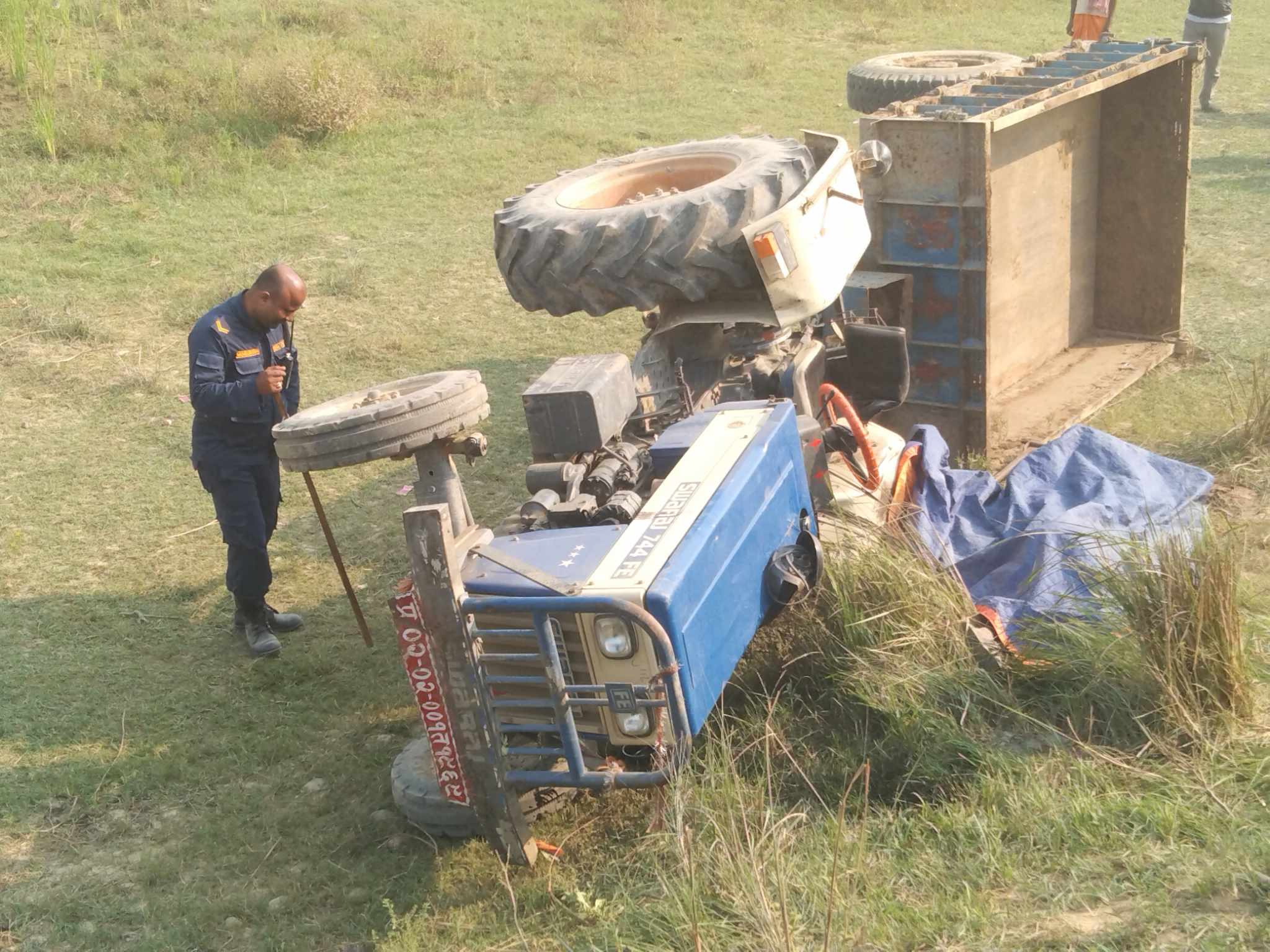 आज दिउँसो प्रदेश २-०-००१ त १९६९ नम्बरको ट्रयाक्टर पल्टिँदा चालक पिपरा गाउँपालिका ६ का अन्दाजी ३५ वर्षीय रामगुलाम यादवको मृत्यु भएको हो । घटनास्थलमै ट्र्याक्टरमै किचिएर चालक यादवको मृत्यु भएको प्रहरीले जनाएको छ ।
