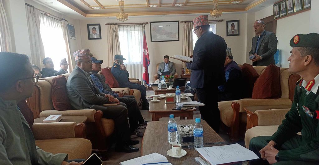 उपप्रधानमन्त्री एवम् गृहमन्त्री नारायण्काजी श्रेष्ठको अध्यक्षतामा गृह मन्त्रालयमा प्रधानमन्त्री तथा मनित्रपरिषदको कार्यालय, सुरक्षा निकायका प्रमुखहरु, स्वास्थ मन्त्रालय, संघीय मामिला मन्त्रालय, परराष्ट्र मन्त्रालय, भौतिक पूर्वाधार तथा यातायात मन्त्रालय र नेपाली सेनाका प्रतिनिधिहरुको बैठक सुरु भएको हो ।