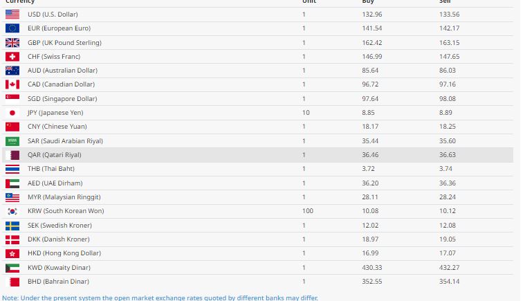यस्तै कतारी रियालको मूल्य एकको खरिद दर ३६ रुपैयाँ ४६ पैसा र बिक्री दर ३६ रुपैयाँ ६३ पैसा र क्यानाडियन डलर एकको खरिद दर ९६ रुपैया ७२ पैसा रहेको छ भने विक्री दर ९७ रुपैयाँ १६ पैसा रहेको राष्ट् बैंकले जनाएको छ ।