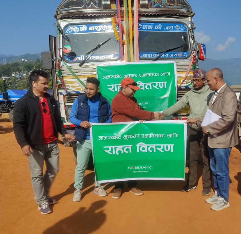 गत शुक्रबार मध्यरात जाजरकोटलाई केन्द्र बनाएर ६.४ रेक्टर स्केलको भूकम्प जाँदा पश्चिम नेपालमा ठुलो धनजनको क्षति भएको थियो । प्रभावित क्षेत्रका जनतालाई सहयोग गर्ने नबिल बैंकको आकस्मिक निर्णयसँगै राहत उपलब्ध गराइएको हो ।
