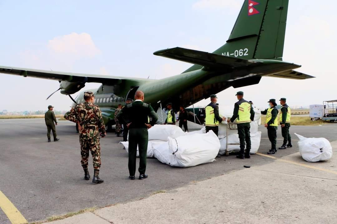 काठमाडौं । काठमाडौं महानगरपालिकाले भूकम्प पीडितहरूका लागि राहत सामाग्री पठाएको छ । महानगरले नेपाली सेनाको हेलिकप्टरमार्फत जाजरकोट र पश्चिम रूकुमका भूकम्प पीडितहरूका लागि राहत साम्रागी पठाएको हो ।