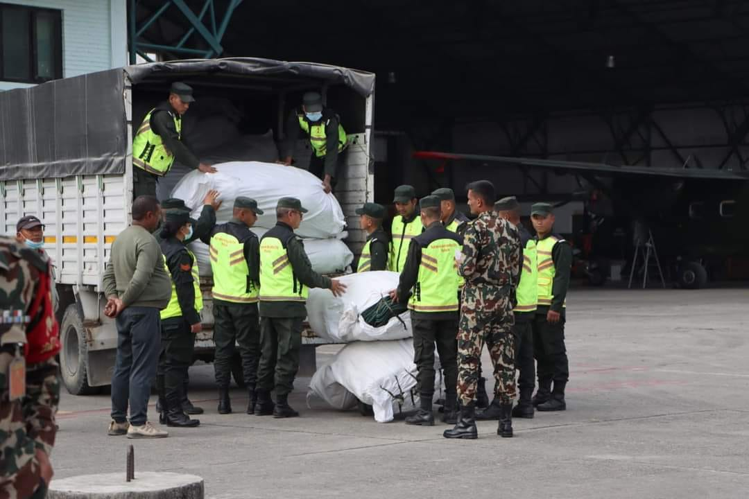 काठमाडौं । काठमाडौं महानगरपालिकाले भूकम्प पीडितहरूका लागि राहत सामाग्री पठाएको छ । महानगरले नेपाली सेनाको हेलिकप्टरमार्फत जाजरकोट र पश्चिम रूकुमका भूकम्प पीडितहरूका लागि राहत साम्रागी पठाएको हो ।