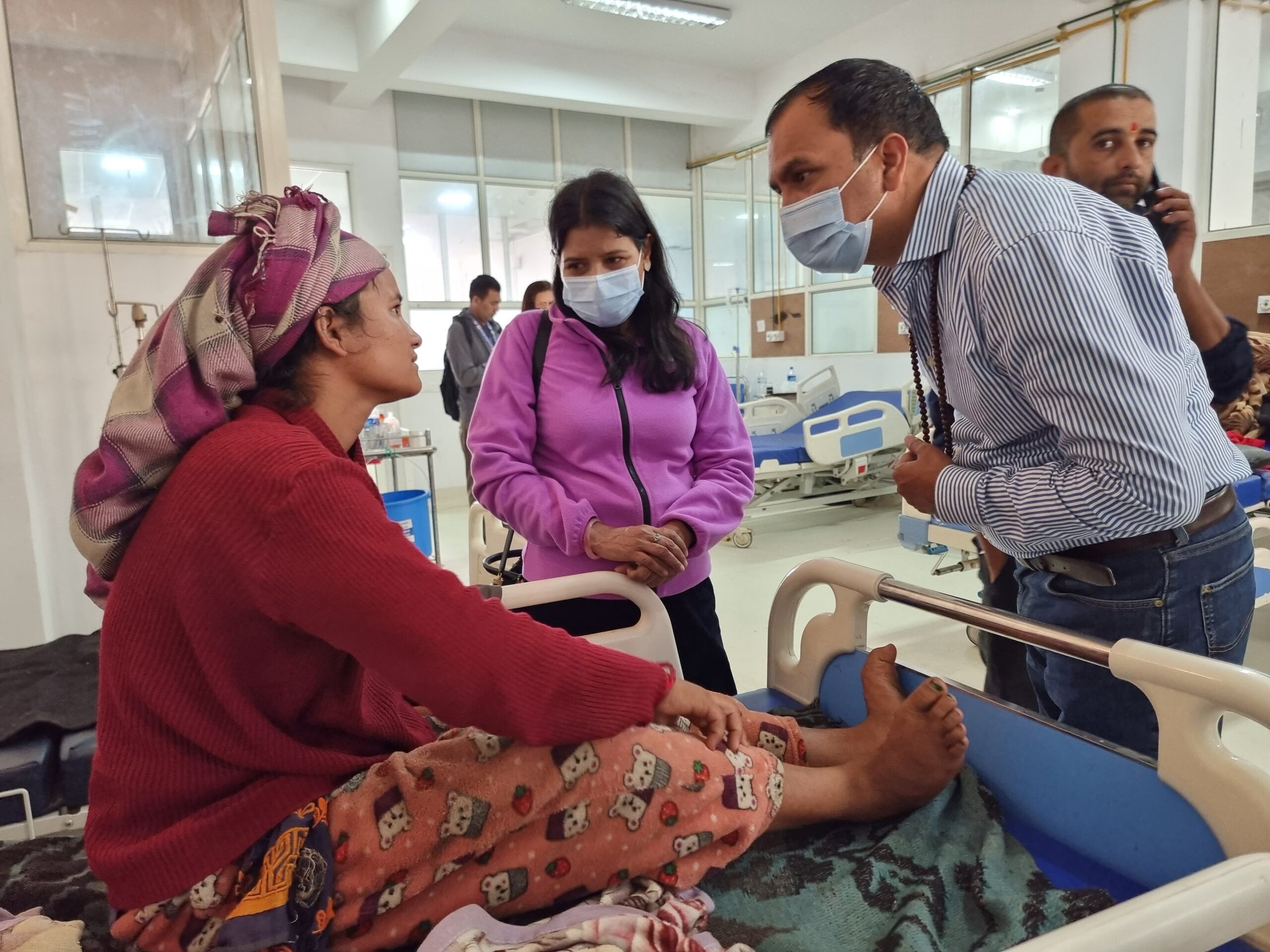 राहत सामग्री लिएर प्रभावित स्थलतर्फ हिँडेको शर्मा नेतृत्वको टोलीले सोमबार भेरी अञ्चल अस्पतालमा उपचाररत घाइते तथा परिवारजनसँग भेट गरेर उनीहरुको अवस्थाबारे जानकारी लिएको हो ।