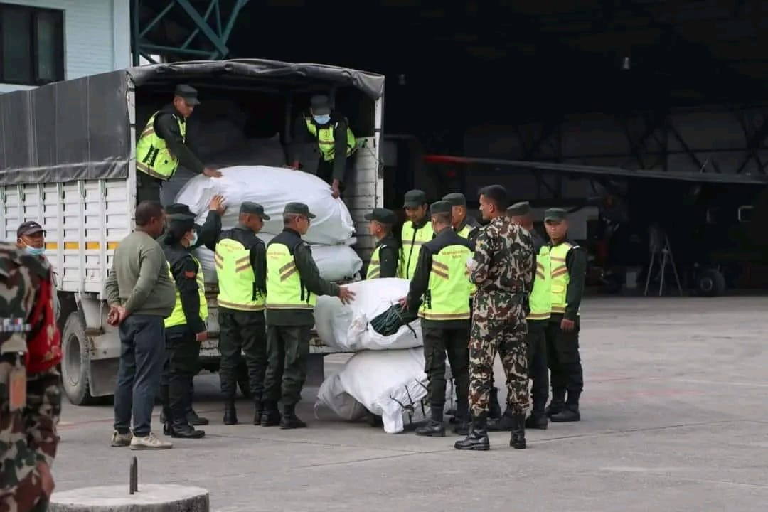 आज त्रिभुवन अन्तराष्ट्रिय विमानस्थलबाट पीडितका लागि विभिन्न राहत सामग्री पठाइएको हो ।