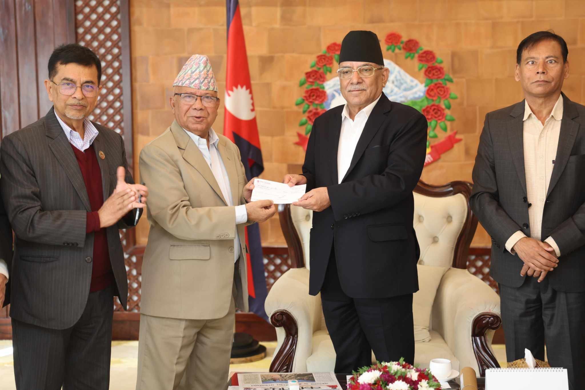 आज प्रधानमन्त्रीको सरकारी निवास बालुवाटारमा पुगेर पार्टी अध्यक्ष माधवकुमारसहितका नेताहरुले प्रधानमन्त्री पुष्पकमल दाहाल प्रचण्डलाई २५ लाख रुपैयाँ हस्तान्तरण गरेका हुन् ।